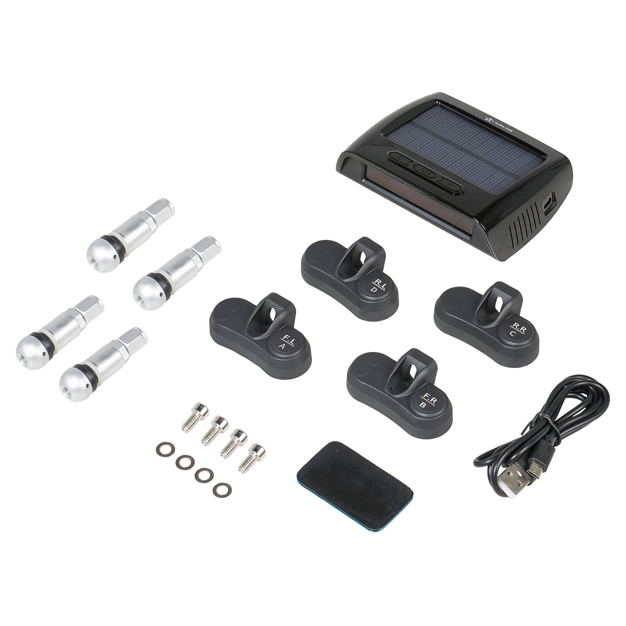 Система контроля давления в шинах (TPMS) представляет из себя комплект из 4 внутренних датчиков давления и приёмного модуля с цветным ЖК дисплеем. Датчики монтируются вместо штатного вентиля колеса автомобиля, измеряют давление и температуру воздуха в шине и передают информацию о их значениях по радиоканалу на дисплей. Приёмный модуль принимает информацию о давлении в шинах и отображает значения давления в шинах на встроенном ЖК индикаторе. При изменении давления в колесе система сигнализирует об этом водителю звуковыми сигналами и отображает информацию на дисплее. Пороговые значения давлений и температуры настраиваются в меню дисплея. Приёмный модуль питается от встроенного литий-полимерного аккумулятора, который подзаряжается от встроенной солнечной батареи или зарядного кабеля microUSB. Датчики давления питаются от встроенных батареек CR2050, по одной штуке в каждом датчике. Заряда батареек хватает до 36 месяцев работы. Для установки датчиков в колесо, требуется шиномонтаж.