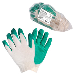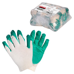 Перчатки трикотажные ХБ с латексным покрытием ладони, зеленые, (1 пара) 13 класс, модель AM_ct24ll