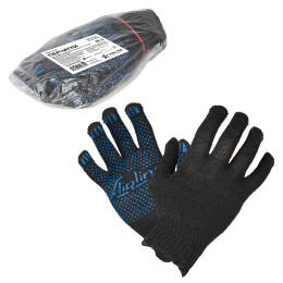 Перчатки трикотажные ХБ с ПВХ покрытием, черные, (к-т 5 пар), 7,5 класс/40г., мод.202ч