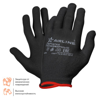 Применяются для защиты кистей рук от механических воздействий (истирания). Перчатки изготовлены из тонкого 100% полиэфира черного цвета, схожего с нейлоном. Перчатки отлично облигают руку, что повышает чувствительность и позволяет работать с мелкими предметами.