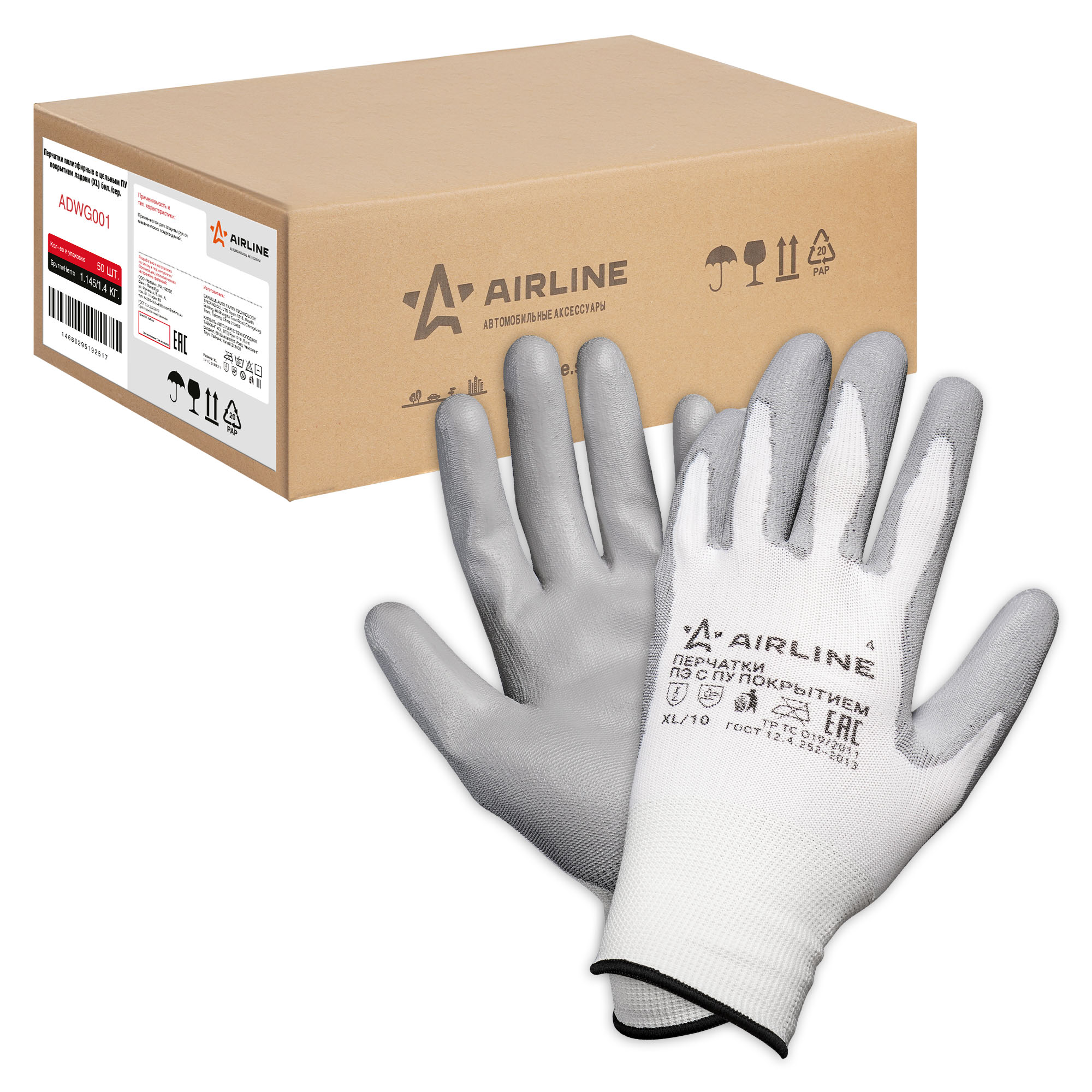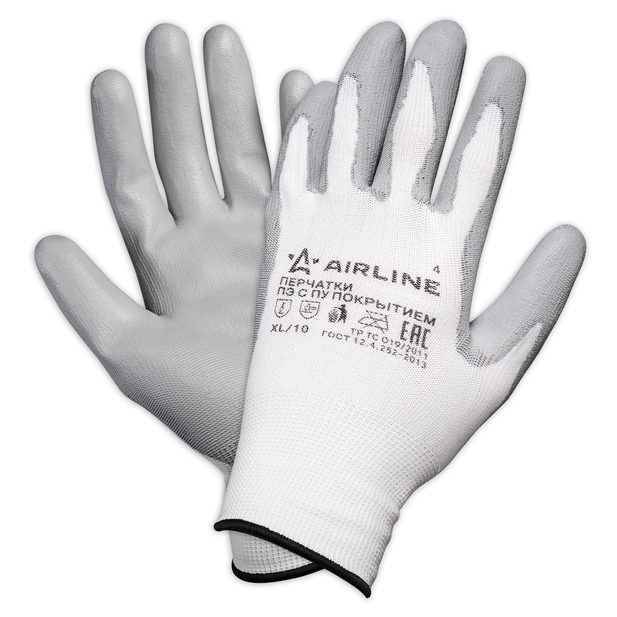 Перчатки полиэфирные с цельным ПУ покрытием ладони (XL) бел./сер.