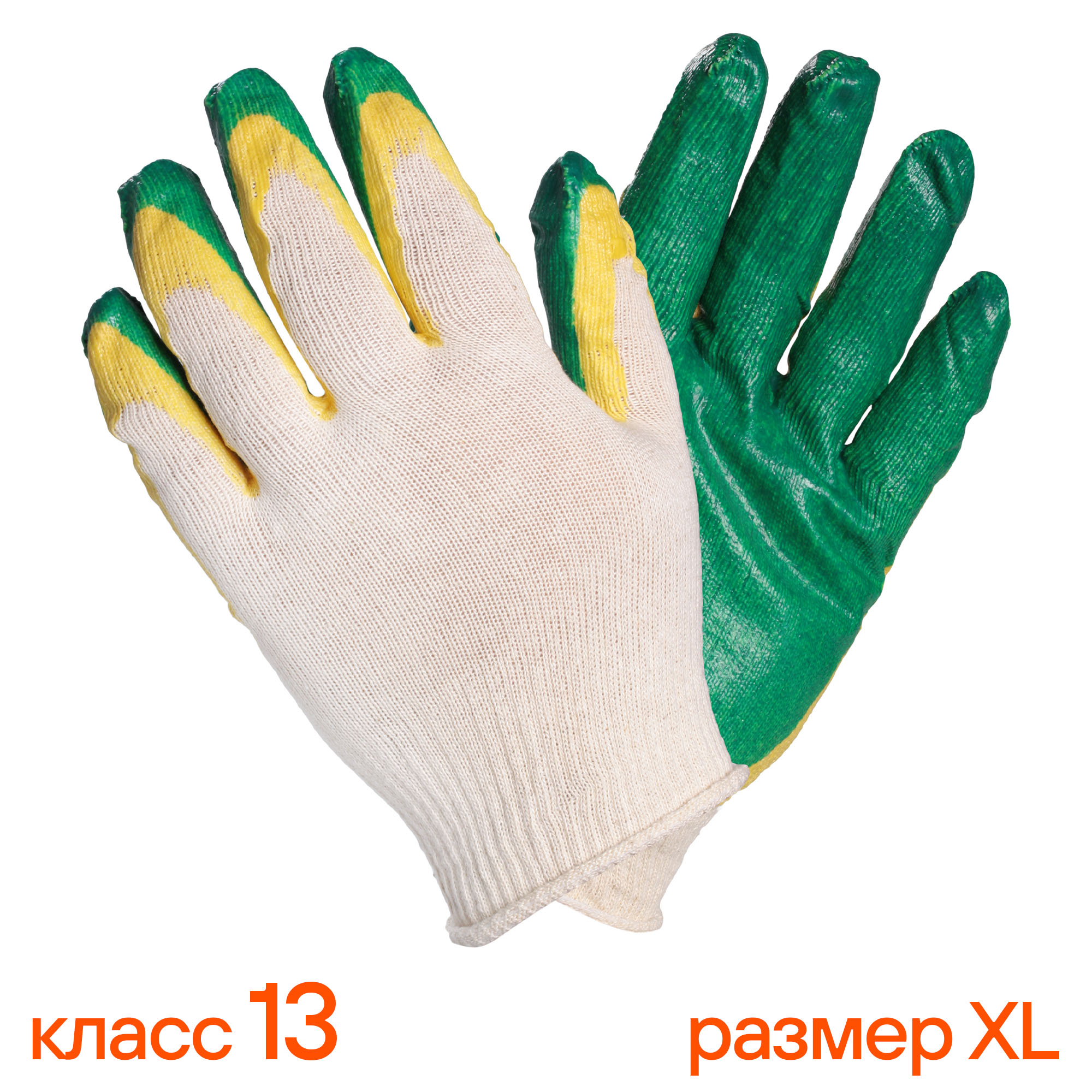 Двойное латексное покрытие ладони перчаток обеспечивает хорошее сцепление с инструментом, предотвращая проскальзывание рук во время работы, а также защищают ладони от воды и маслянистых жидкостей.