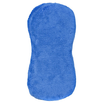 Губка в форме цифры восемь изготовлена из микрофибры и предназначена для влажной уборки поверхностей в салоне автомобиля или дома. Нижняя часть губки окрашена в ярко-синий цвет, а верхняя имеет нежно-голубой оттенок. Губка активно впитывает жидкость, а также не оставляет разводов на протираемой поверхности.
