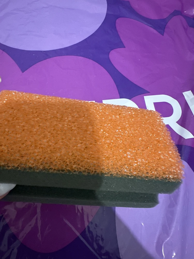 Достоинства: Очень хорошая губка! Фигурная форма удобно лежит в руке, а коралловый слой отлично собирает пыль и загрязнения с пластика и стёкол. Покупкой доволен.