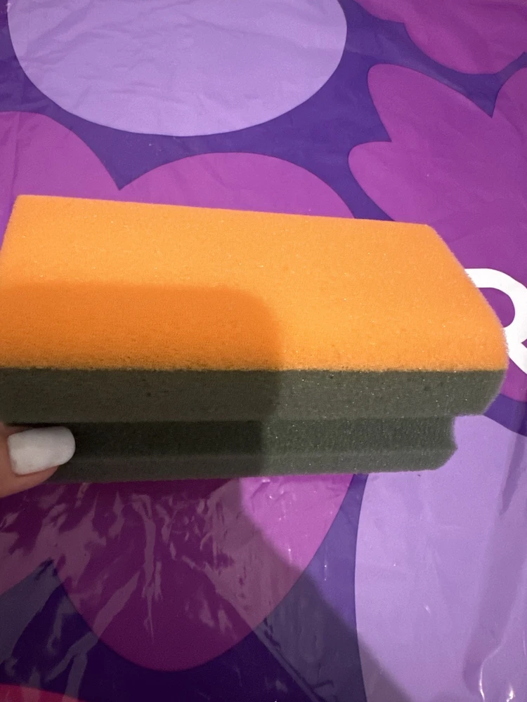Достоинства: Губка удобная, большая, качественная, имеет 2 стороны одна погрубее, вторая мягкая. Мыть удобно ей