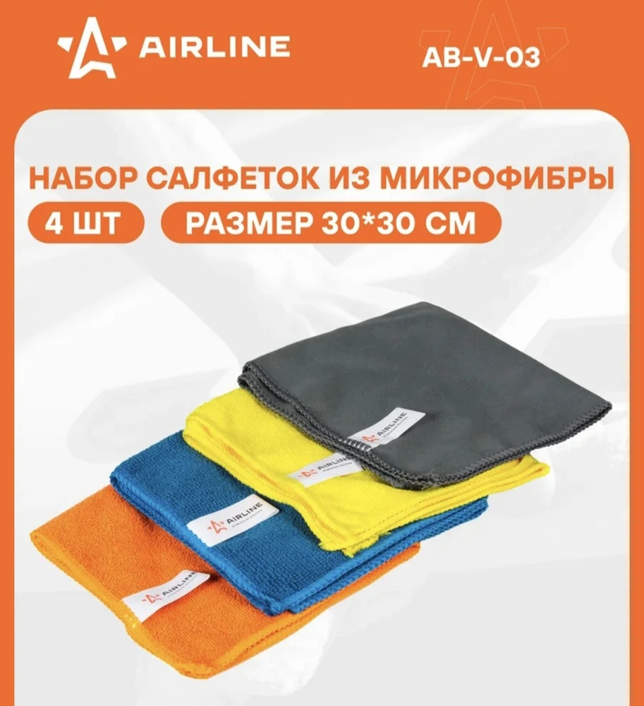 Набор салфеток для уборки дома и автосалона от производителя AIRLINE поможет достигнуть чистоты в интерьере без усилий и колоссальных затрат времени. Благодаря особому составу из микрофибры, салфетки от AIRLINE впитывают большое количество жидкости и делают убираемую поверхность чистой после первого протирания. В комплект входят: 3 салфетки из микрофибры оранжевого, синего и желтого цветов; 1 двухсторонняя салфетка из микрофибры серого цвета.