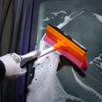 Компактная щетка с небольшой ручкой подойдет для удаления загрязнений со стекол легковых и среднегабаритных автомобилей. На рабочей поверхности щетки расположена поролоновая губка и прорезиненный водосгон. Ручка имеет эргономическую рукоятку.