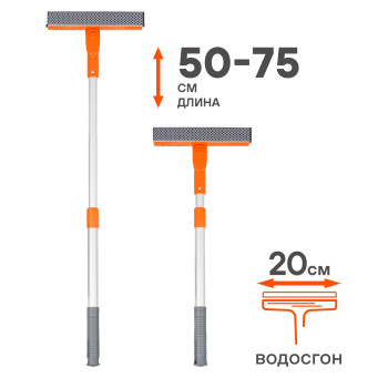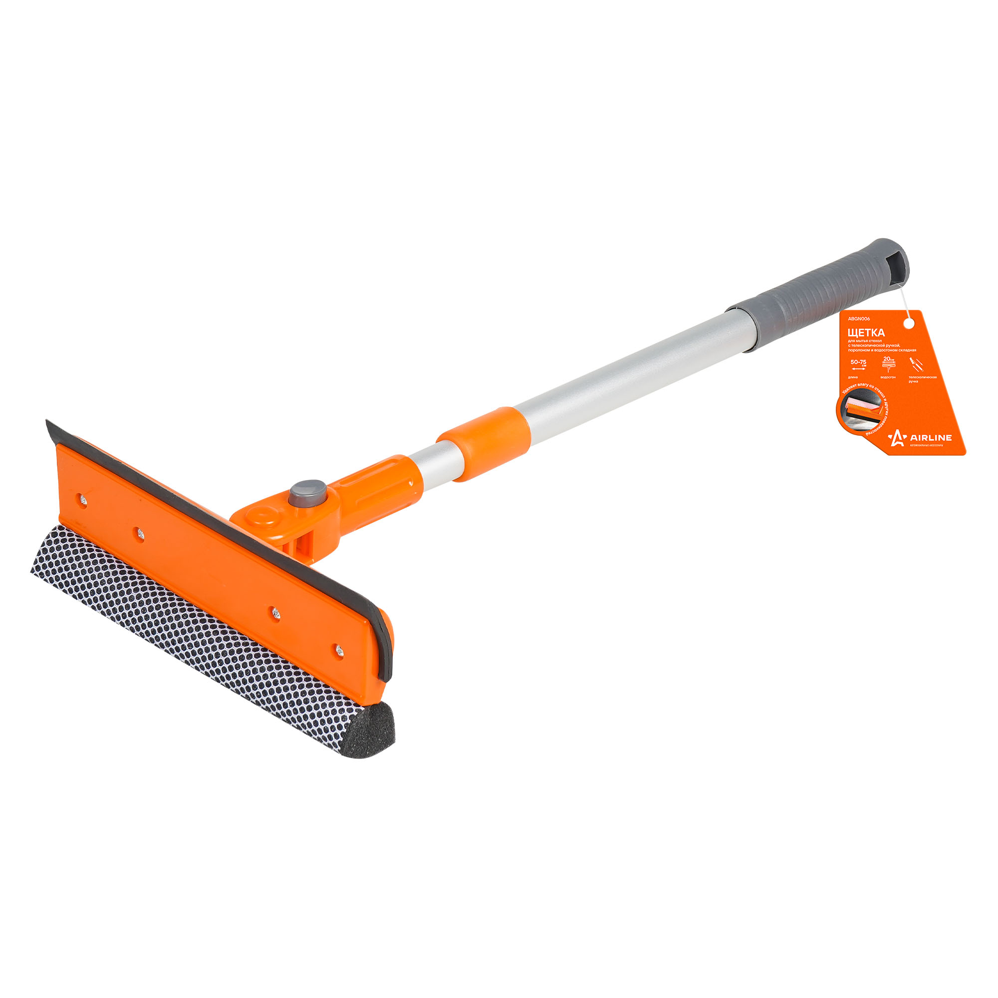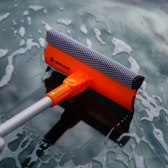 Компактная складная щетка AIRLINE с пластиковой ручкой подойдет для удаления загрязнений со стекол легковых и среднегабаритных автомобилей. На рабочей поверхности щетки расположена поролоновая губка и прорезиненный водосгон. Телескопическая ручка позволяет регулировать длину от 50 до 75 см.