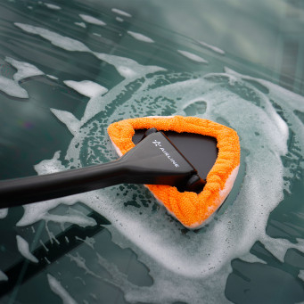 Щетка выполнена из пластика с насадкой из мягкой микрофибры. Идеально подходит для мытья лобового стекла за счет подвижности насадки. Отлично справляется с запотеванием стекла.