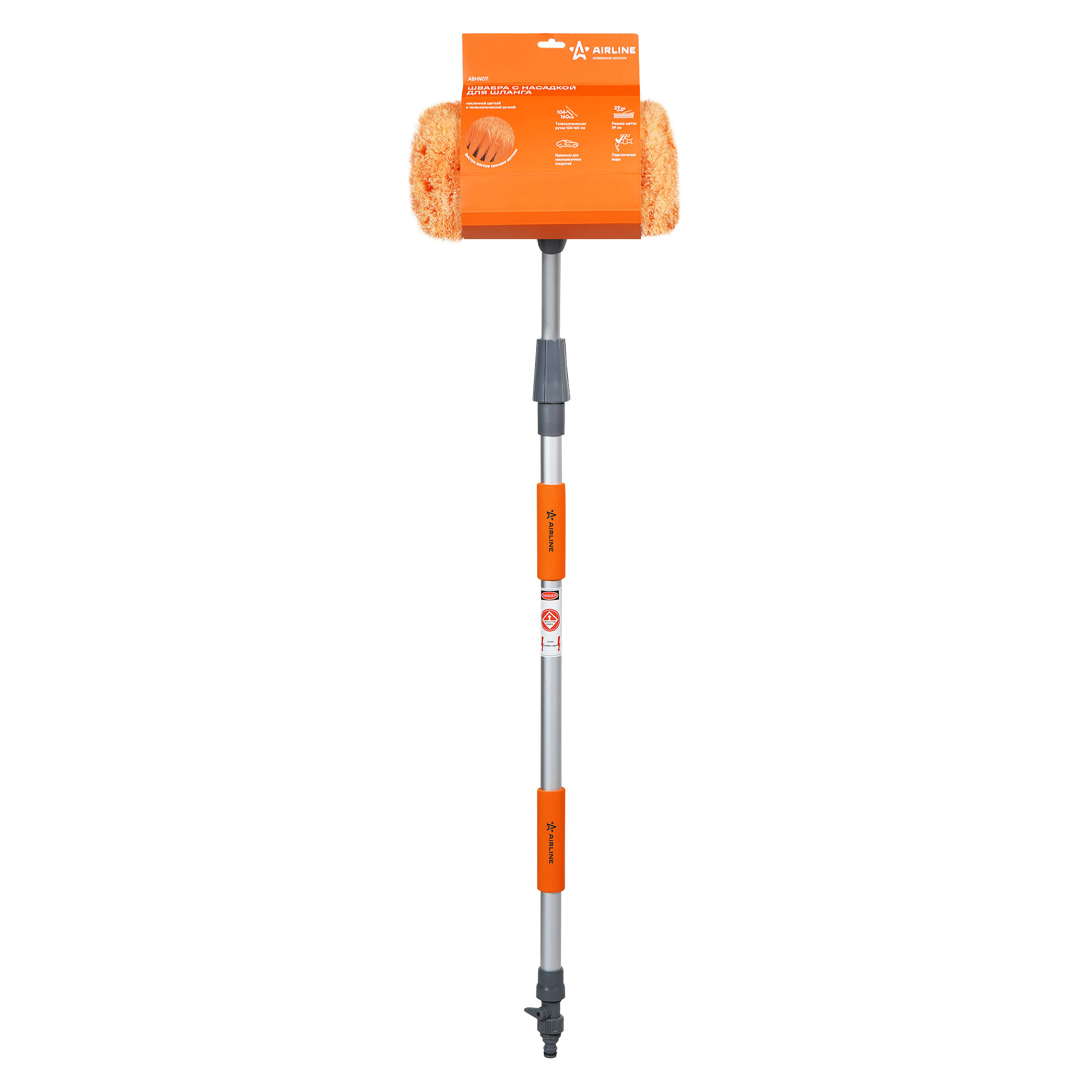 Швабра AIRLINE длиной 104-160 см.выполнена из высококачественного пластика и алюминия. Щетка располагается под углом для удобства использования. Телескопическая ручка позволяет регулировать длину. Съемная насадка щетки увеличенного размера (29 см.) и выполнена из мягкой распушенной щетины. Имеется насадка для шланга для подключения подачи воды.