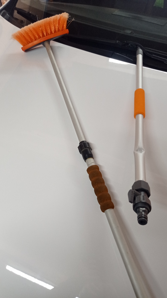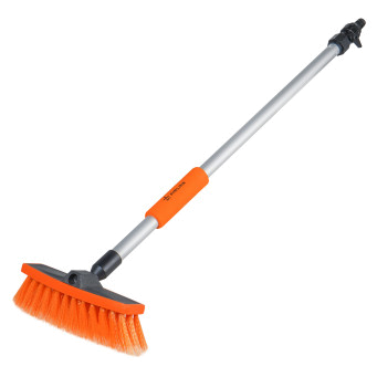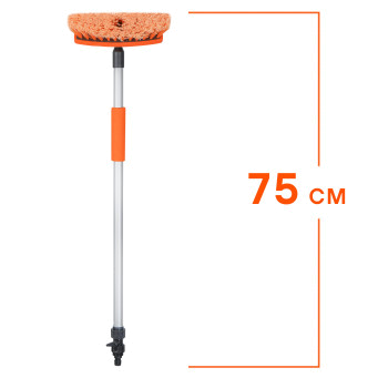 Самая компактная швабра имеет ручку длиной 75 см, а также щетку для удаления пыли и грязи с плоских поверхностей. Щетка имеет пластмассовое основание с прорезиненным кантом шириной 20 см и мягкий распушенный ворс для деликатной уборки. Для более тщательной уборки предусмотрена возможность подключения шланга с водой. Рабочая поверхность щетки легко открепляется.