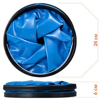 Ведро-трансформер от AIRLINE – это фирменная разработка компании-производителя. Ведро изготовлено из материала, который не пропускает жидкость. К преимуществам изделия относится легкая масса, а также складной механизм. Таким образом, ведро легко хранить в багажнике автомобиля.
