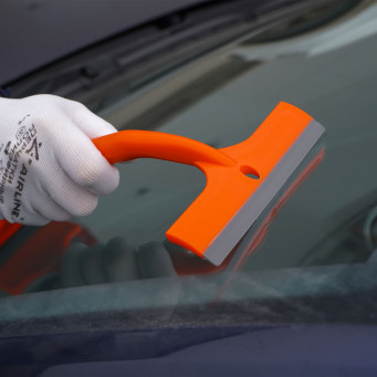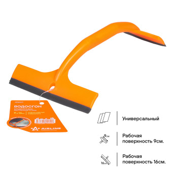 Водосгон данной модели отличается универсальностью и компактными размерами. Ширина рабочей поверхности изделия с одной стороны составляет 9 см, с другой стороны - 16см, что позволяет успешно использовать водосгон в бытовых целях и без затруднений хранить в салоне автомобиля.