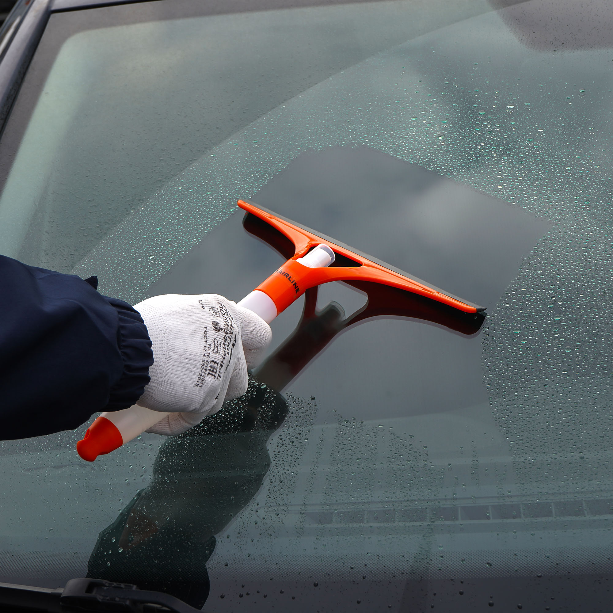 Водосгон представляет собой флакон объемом 125 мл с распылителем, и лезвие длиной 25 см, выполненное из мягкой резины.
