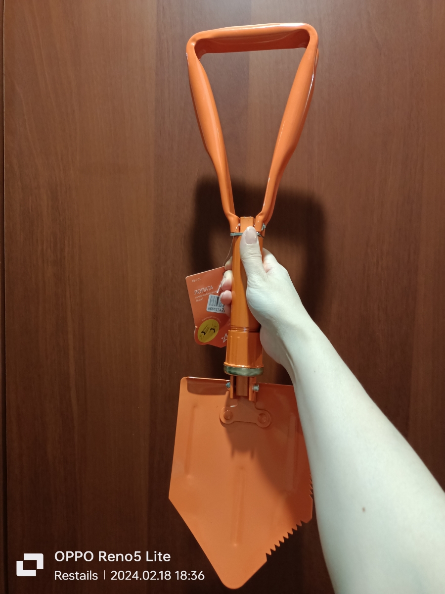 Лопатка саперная является незаменимой вещью для проведения различных ремонтных и земляных работ. Удобный складывающийся механизм лопатки делает ее компактной и позволяет без проблем переносить или транспортировать в любом месте. Изделие выполнено из прочного металла.