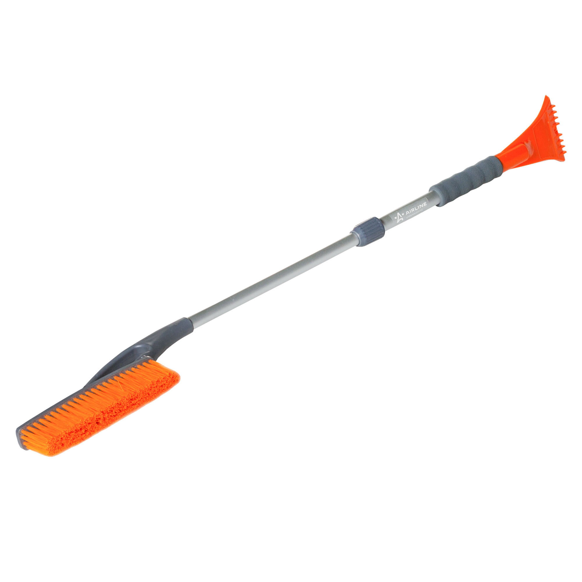 Данная модель щетки для уборки снега и льда оснащена телескопической ручкой (MIN длина = 78 см, MAX = 100 см) с усиленным основанием рабочей поверхности, а также пятирядной щетиной, которая быстро устраняет загрязнения, не нанося при этом повреждений поверхности автомобиля. Щетка имеет рукоятку из алюминия, а также специальную эргономичную вставки из морозоустойчивого поролона, которые делают эксплуатацию изделия удобной даже при низком температурном режиме. В состав рукоятки входит прочный пластик, который не подвержен перепадам температур. Для особо сложных загрязнений и льда предусмотрен скребок на другом конце щетки.