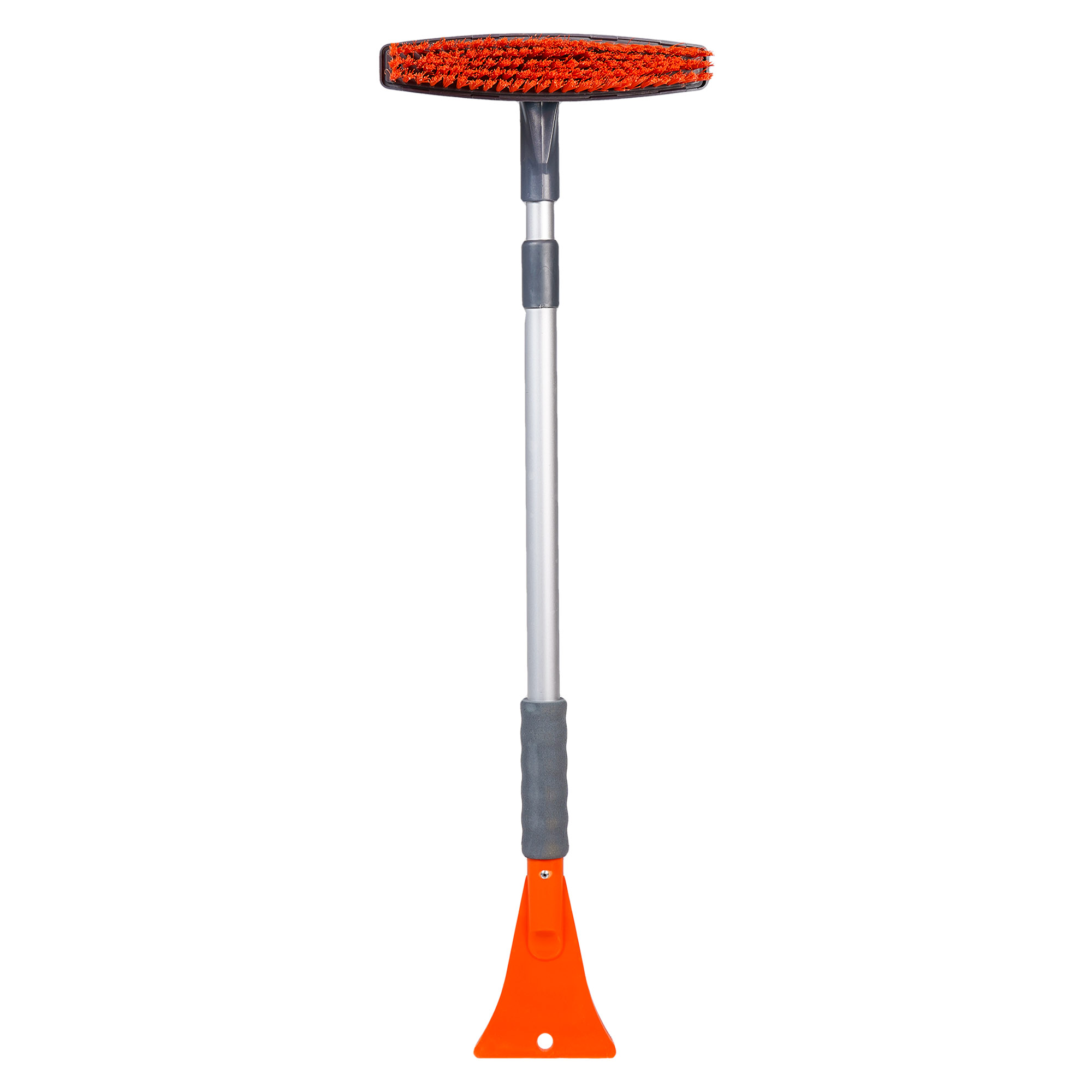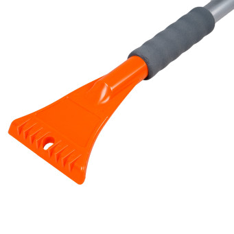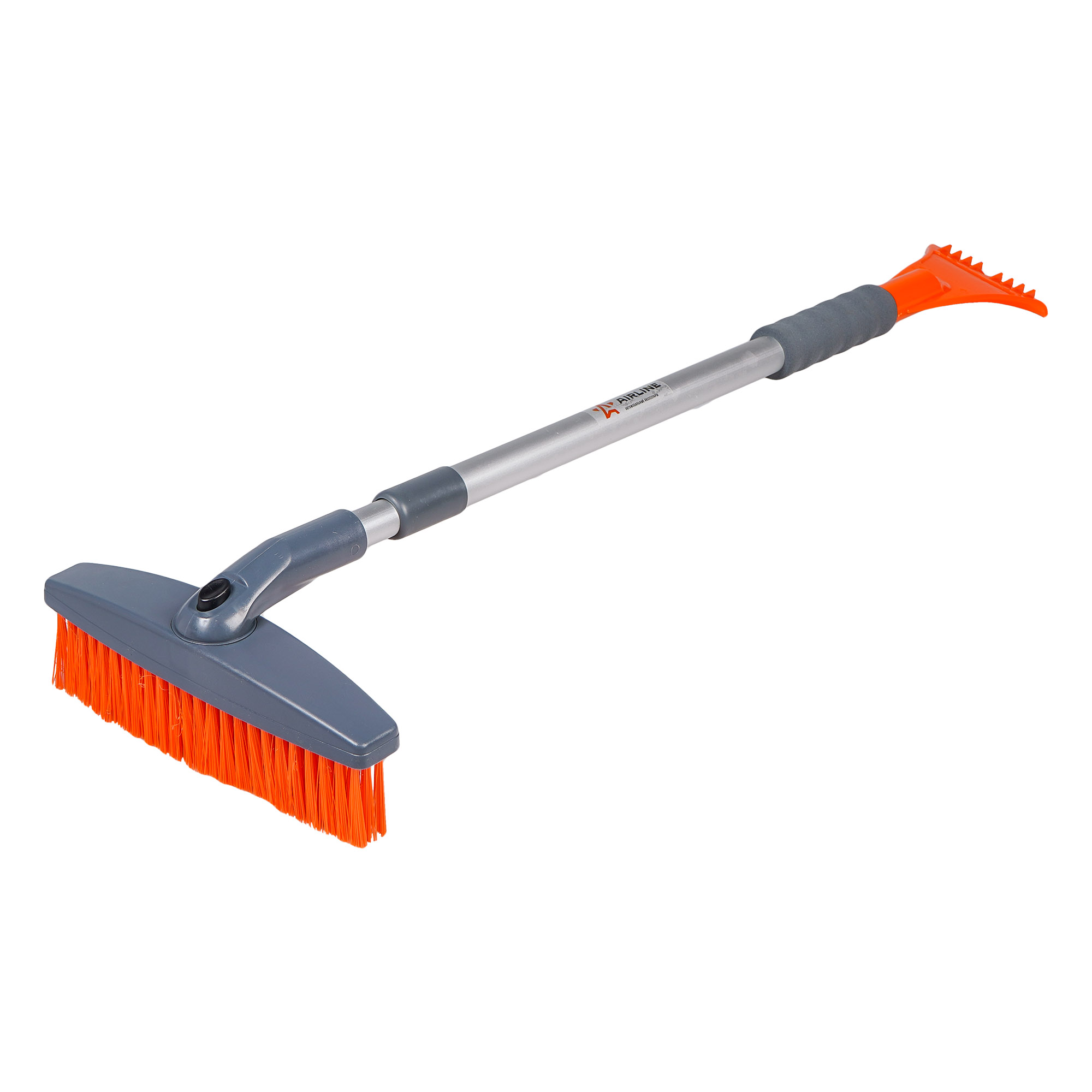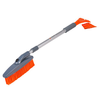 Флагманская модель щетки для уборки снега и льда оснащена телескопической ручкой с MAX длиной 123 см. Щетка имее поворотную голову с пятирядной щетиной, которая позволяет с двойным удобством убрать снег с автомобиля. Щетка имеет рукоятку из алюминия, а также специальную эргономичную вставки из морозоустойчивого поролона, которые делают эксплуатацию изделия удобной даже при низком температурном режиме. В состав рукоятки входит прочный пластик, который не подвержен перепадам температур. Для особо сложных загрязнений и льда предусмотрен скребок на другом конце щетки.