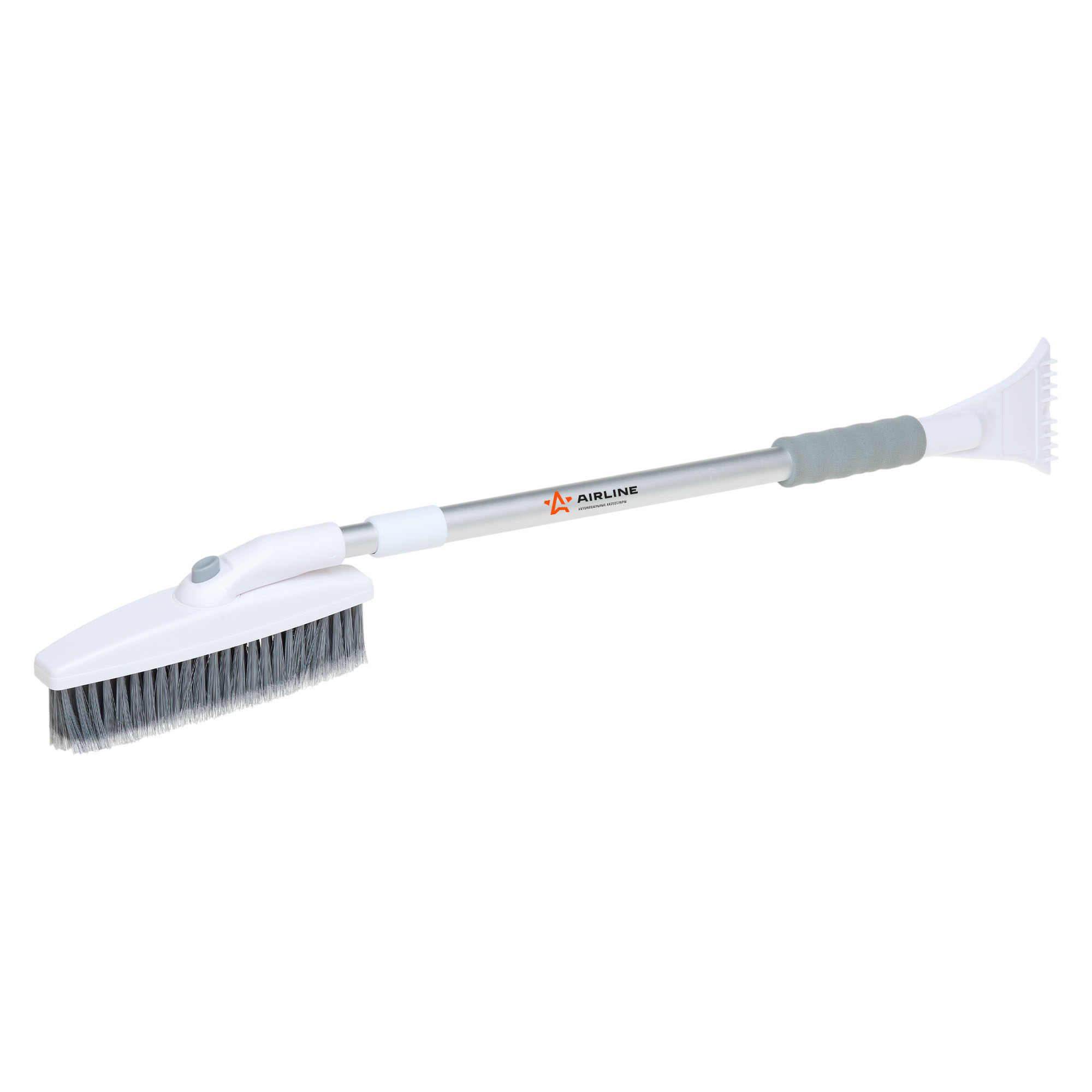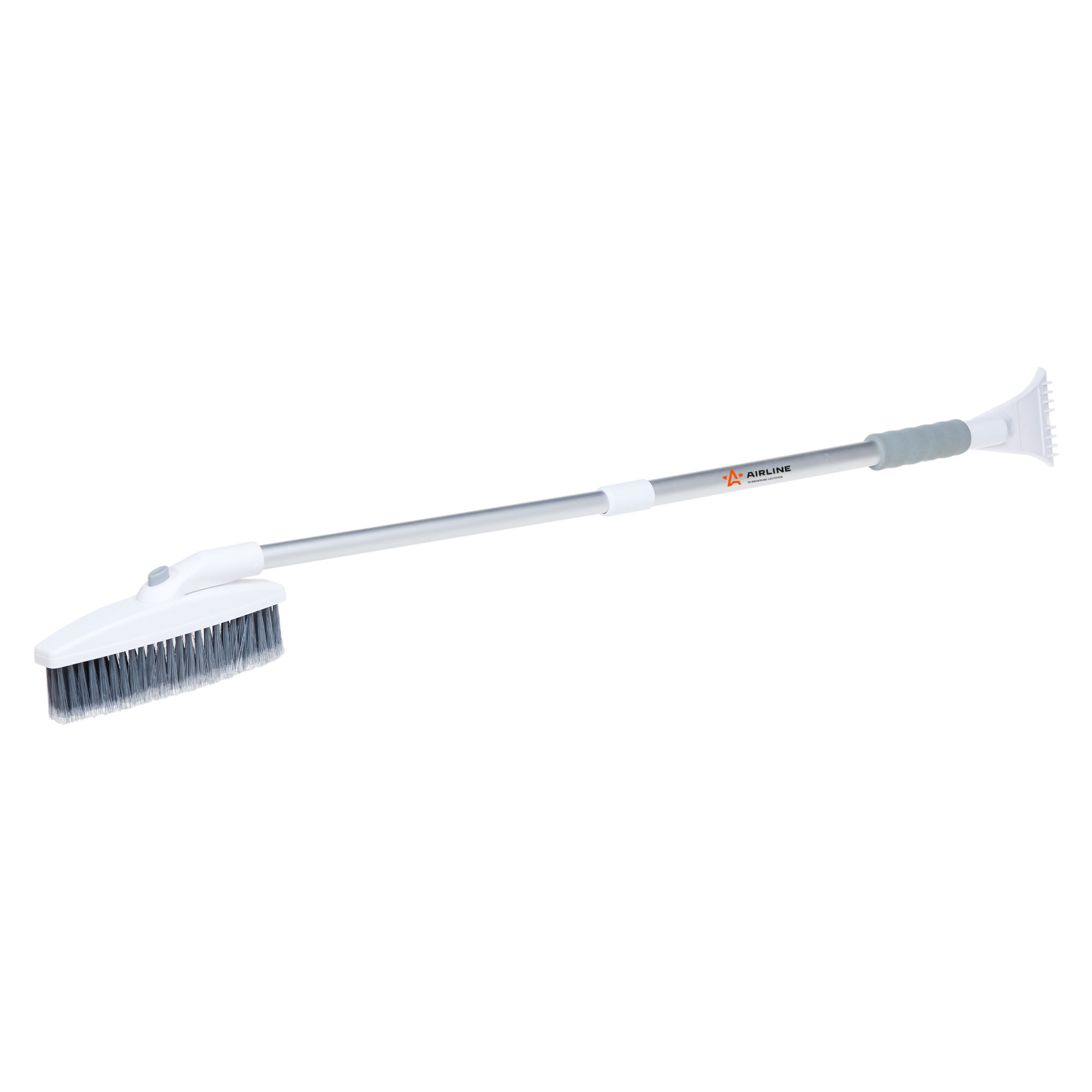 Флагманская модель щетки для уборки снега и льда оснащена телескопической ручкой с MAX длиной 123 см. Щетка имеет поворотную голову с пятирядной щетиной, которая позволяет с двойным удобством убрать снег с автомобиля. Распушенная щетину, которая позволяет проводить очистку снега с лакокрасочной поверхности автомобиля максимально деликатно. Рукоятка сделана из алюминия, специальную эргономичную вставки - из морозоустойчивого поролона, которые делают эксплуатацию изделия удобной даже при низком температурном режиме. В состав рукоятки входит прочный пластик, который не подвержен перепадам температур. Для особо сложных загрязнений и льда предусмотрен скребок на другом конце щетки.
