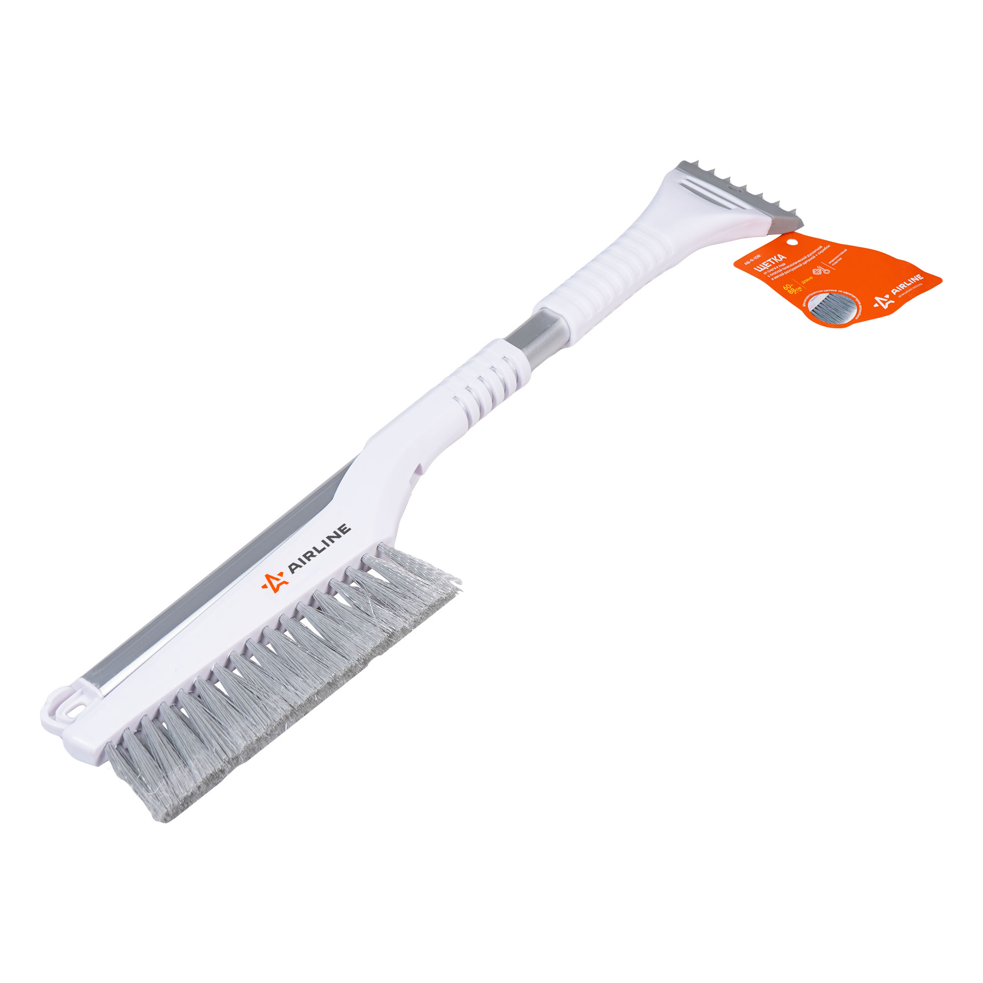 Щетка для очистки льда и снега представляет собой усовершенствованную модель, разработанную специально по технологии AIRLINE. Щетка оснащена плоской алюминиевой рукояткой, которая не позволяет изделию прокручиваться во время эксплуатации, что значительно повышает комфорт при использовании. Распушенная щетину, которая позволяет проводить очистку снега с лакокрасочной поверхности автомобиля максимально деликатно. Щетка имеет двухрядную щетину. MAX длина = 88 см.