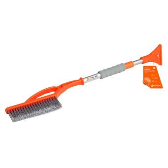 Пока не сезон - в деле не пробовал, щетка как щетка, раздвигается- собирается. На вид тоненькая щетка и скребок, но как и на фото. Лёд долбить и крышу ломать ей не собирался. Цвет яркий, в машине и на снегу точно не потеряется.Достоинства: отличная,удобная