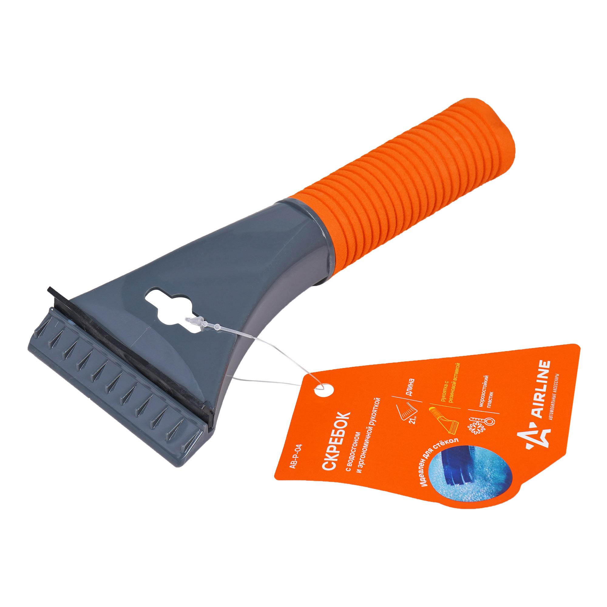 Скребок длиной 21 см с компактным резиновым водосгоном - позволит убрать не только лед со стекол автомобиля, но и удалить излишнюю влагу. Эргономическая ручка изделия изготовлена из мягкого прорезиненного материала с ребристой противоскользящей поверхностью.
