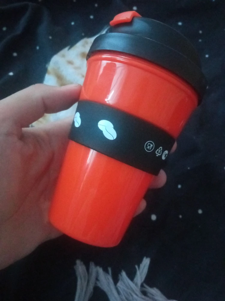 Многоразовый кофейная кружка выглядит, как обычный одноразовый стакан на вынос из кофейни. Он предназначен для питья свежеприготовленного кофе и других напитков. Изготовлен из пищевого пластика (PP) с герметичной крышкой и термостойким резиновым держателем для защиты рук от ожога и случайного выскальзования.