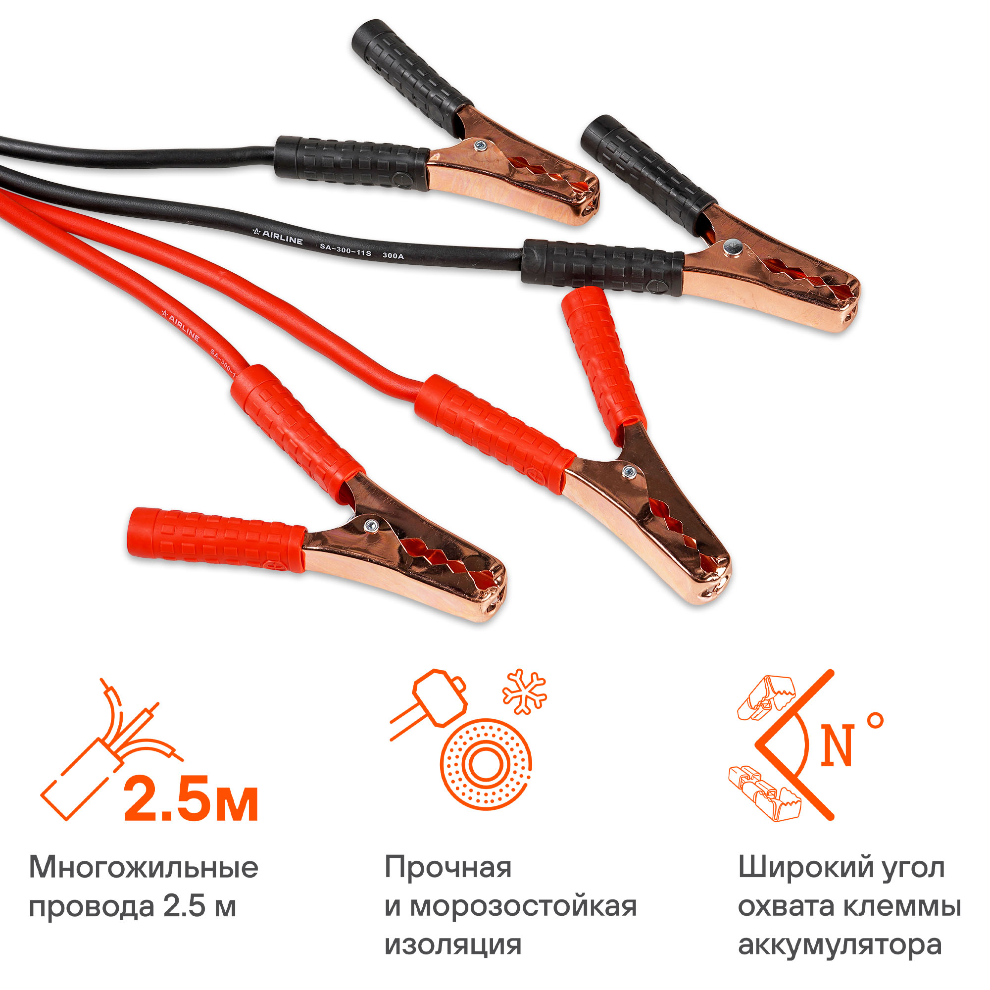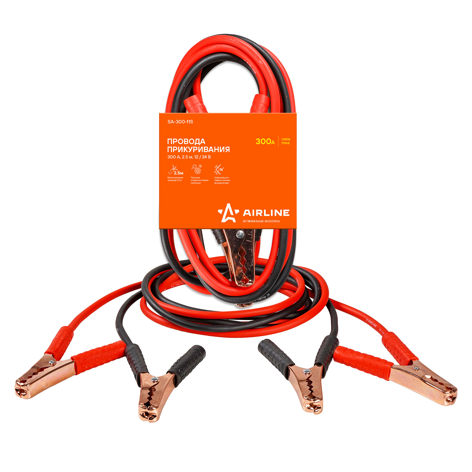 Основной задачей при разработке данных проводов прикуривания мы ставили сделать недорогое изделие, которое при сильном морозе (-40С) поможет завести автомобиль с севшей АКБ. При этом оплетка не потрескается и провод не развалится после первого использования. Мы сделали многожильный токонесущий кабель в морозостойкой оплетке с металлическими крокодилами. Использовали простую, информативную и яркую картонную упаковку, которая помогла существенно снизить цену. Результат: хороший провод для многократного использования и экономия на упаковке.