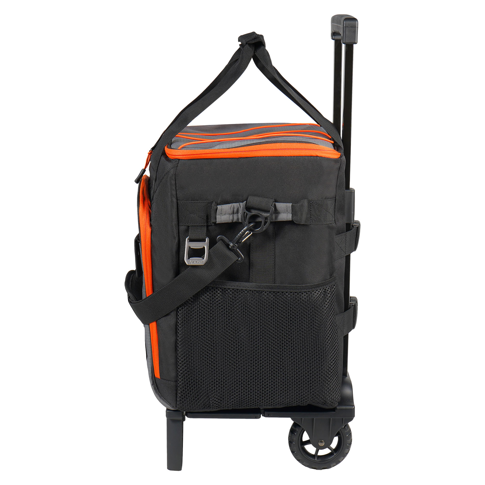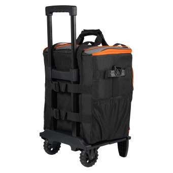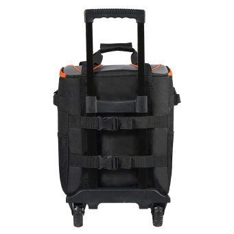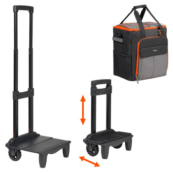 Применяется для длительного сохранения температуры продуктов. Представляет собой вместительную сумку кубообразной формы. Сумка размещена на пластиковом каркасе с колесиками и складной телескопической ручкой для легкой и удобной транспортировки. Имеет трех слойную структуру стенок для максимального сохранения температуры. Изготовлена из высококачественных материалов и имеет полностью герметичный внутренний слой. Спереди и по бокам расположены многочисленные карманы для раздельного хранения мелочей.