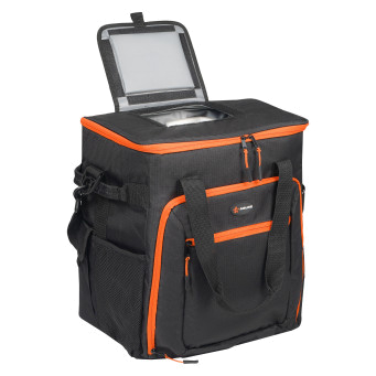 Применяется для длительного сохранения температуры продуктов.Представляет собой вместительную сумку кубообразной формы. Сумка размещена на пластиковом каркасе с колесиками и складной телескопической ручкой для легкой и удобной транспортировки. Имеет трех слойную структуру стенок для максимального сохранения температуры. Изготовлена из высококачественных материалов и имеет полностью герметичный внутренний слой. Спереди и по бокам расположены многочисленные карманы для раздельного хранения мелочей.