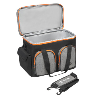 Сумка-холодильник -это надежное средство для обеспечения необходимой температуры и поддержания ее на протяжении длительного периода времени для транспортировки продуктов или других веществ. Сохранение температуры происходит из-за состава изделия, в который входят полиэстер, вспененный полиэтилен, а также водонепроницаемая PEVA пленка. Для удобства открывания, замочки молнии оснащены пуллерами (подвесками). Сумка имеет дорожно-спортивный фасон, что позволяет использовать ее не только для хранения продуктов, но и для перевозки обычных вещей.