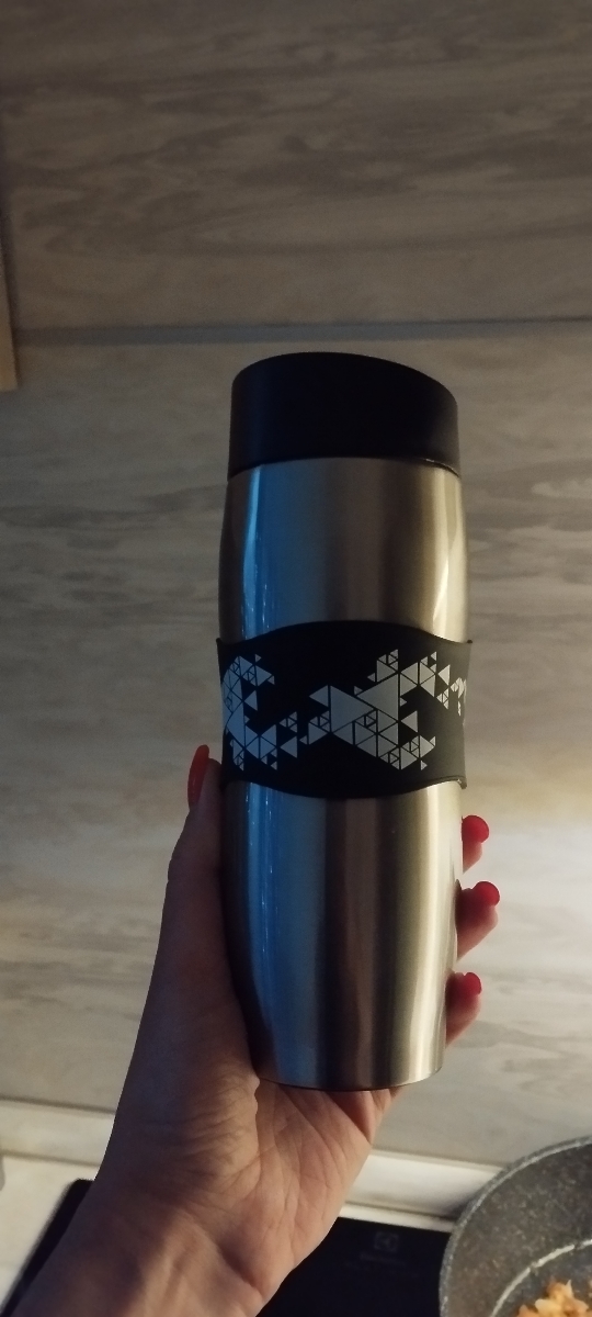 Термокружка- это вид бытовой теплоизоляционной посуды для продолжительного сохранения более высокой или низкой температуры продуктов питания, по сравнению с температурой окружающей среды.Представляет собой ёмкость из нержавеющей стали с двойными стенками и герметичной пластиковой крышкой с системой(клапаном) быстрого открывания. Термокружки оснащены по центру резиновым настаканником, для предотвращения их выскальзывания из рук. Термокружки будут полезны в домашнем быту и незаменимы для дальних поездок.Время сохранения тепла-11 часов (при комнатной температуре +23С, охлаждение на 40+-5С)