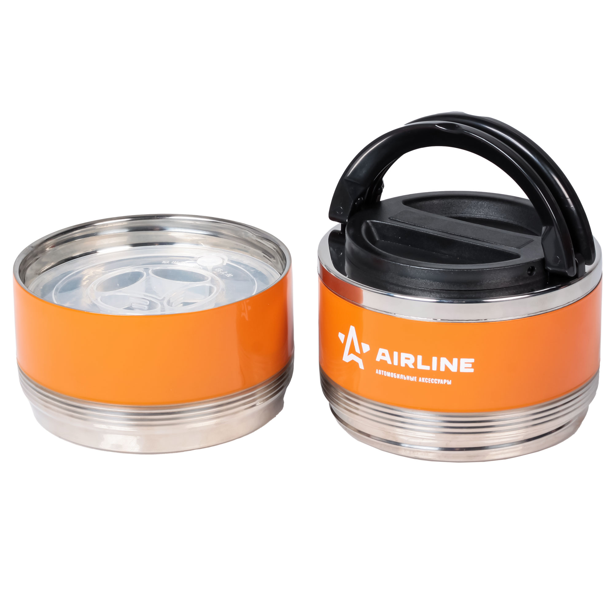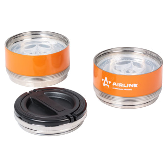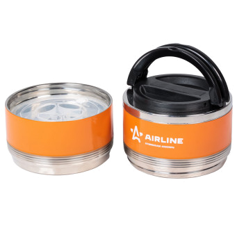 Представляет собой ёмкости, общим объемом 1,4 литра, изоготвленных из 304 нержавеющей стали с двойными стенками и герметичной теплоизолированной крышкой со складной ручкой. Бокс состоит из двух соединяемых между собой круглых контейнеров без горла, удобных для приема пищи. Контейнеры имеют пластиковые крышки оснащенные воздушным клапаном. Их можно использовать независимо друг от друга для временного хранения различного рода еды. Например: первые, вторые и третьи блюда. Боксы будут полезны в домашнем быту, на работе и незаменим в дальних поездках. Время сохранения температуры:Первые блюда (супы)-4 часа, охлаждение на 50С +-5С, при комнатной температуре 24С.