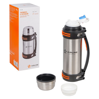Термос- это вид бытовой теплоизоляционной посуды для продолжительного сохранения более высокой или низкой температуры продуктов питания, по сравнению с температурой окружающей среды. Представляет собой 2-х литровую ёмкость из 304 нержавеющей стали с двойными стенками и герметичной пластиковой крышкой с системой быстрого открывания. Термос будет полезен в домашнем быту и незаменим для дальних поездок.Термосы в комплекте имеют две кружки, складную ручку, ремешок для переноски, а также герметичную крышку с системой быстрого открывания. Термосы будут полезны в домашнем быту и незаменимы для дальних поездок.