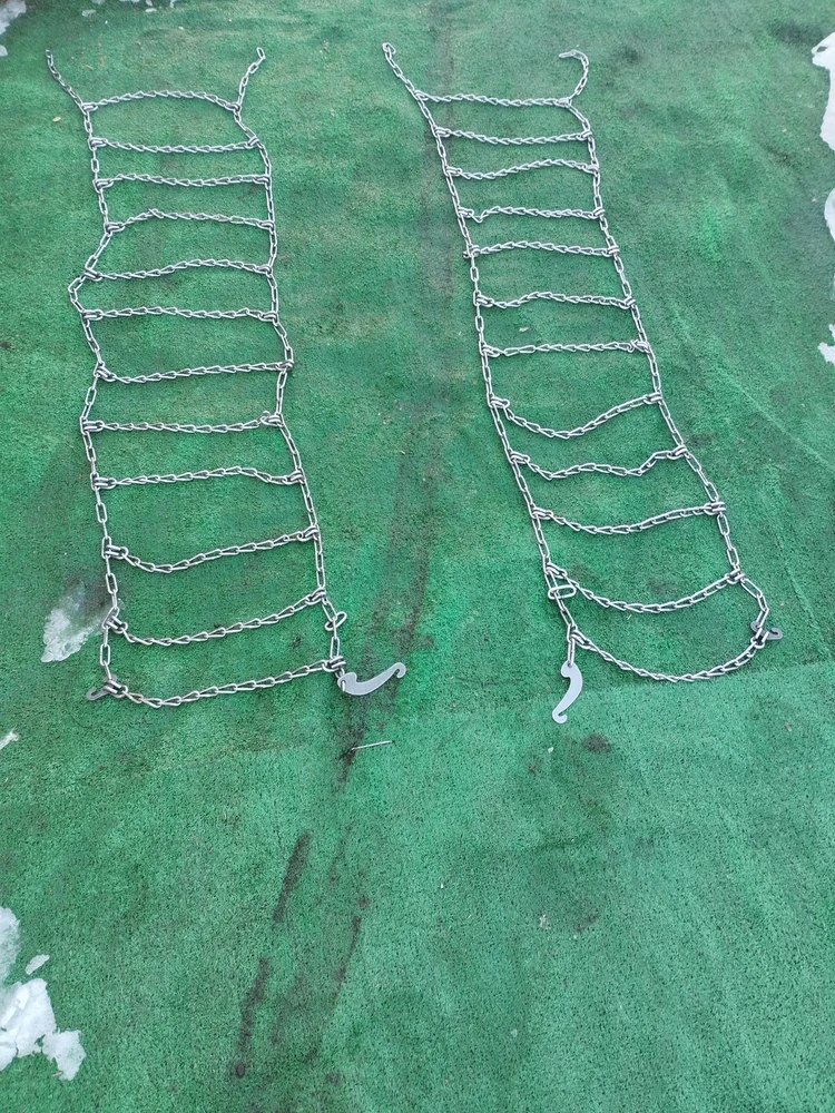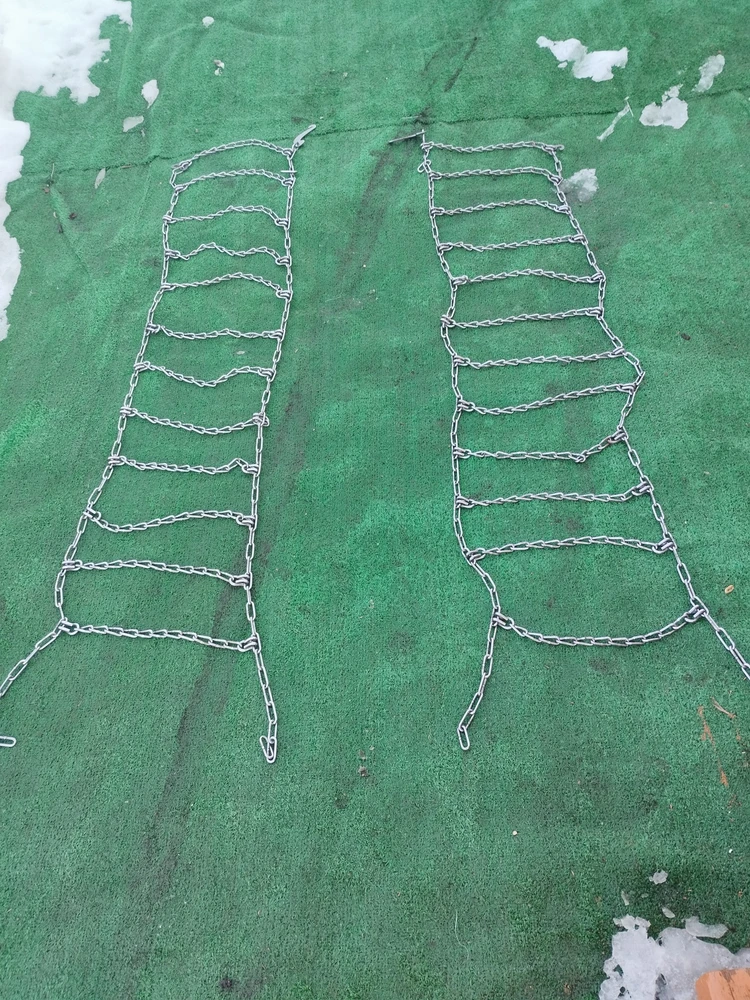 Достоинства: Цепи подошли идеально, металл нормальный, тест драйв прошли. Единственный минус, надо в комплект 2 маленьких карабина класть, чтоб кусок натяжного куска цепи не болтался