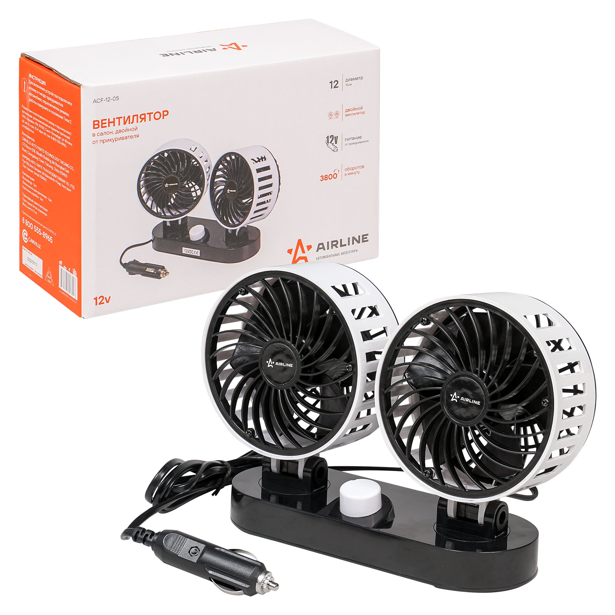 Вентилятор предназначен для обдува воздухом водителя и/или пассажиров в жаркую погоду. Крепится на панель приборов. Имеет выключатель питания с регулировкой и надёжный штекер. Длина провода питания 2 метра