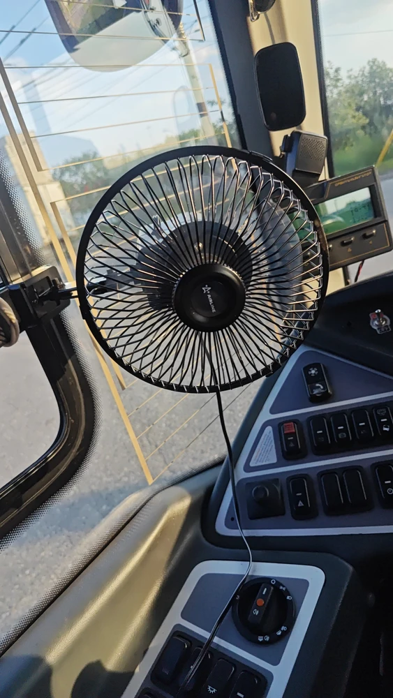 Вентилятор предназначен для обдува воздухом водителя и/или пассажиров в жаркую погоду. Имеет автоматический поворотный механизм для варномерного обдува. Вентилятор надежно устанавливается с помощью крепления - прищепки с прорезиненными накладками антискольжения. Лопасти вентилятора защищены металлическим кожухом. Питание от гнезда прикуривателя автомобиля с напряжением бортовой сети 12В.