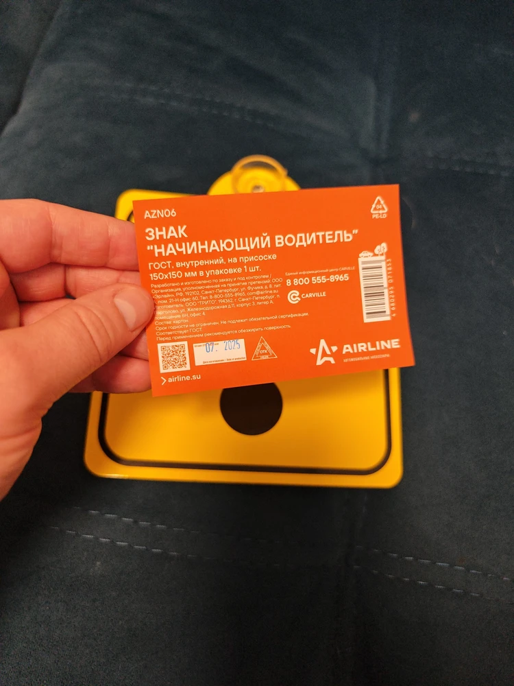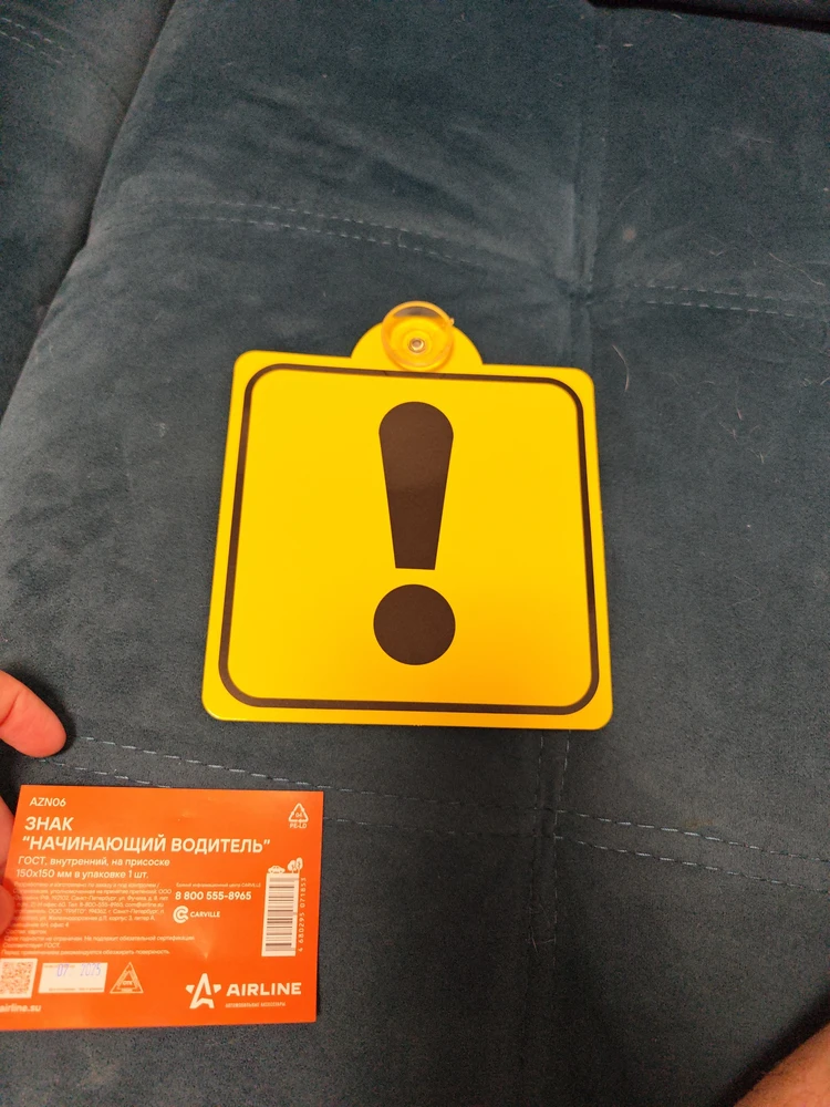 Хороший знак, необходимый всем новичкам - водителям. Крепится легко, держится надёжно. Спасибо продавцу!