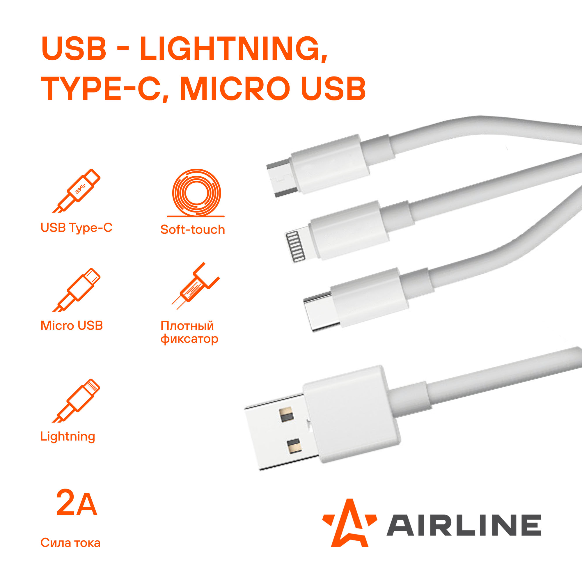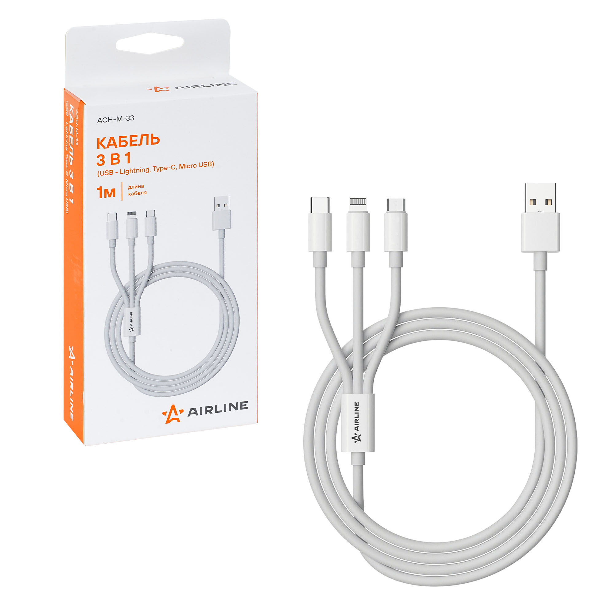 Сделайте свои поездки более комфортными и оставайтесь на связи в любой ситуации с универсальным кабелем для зарядки 3 в 1 AIRLINE!