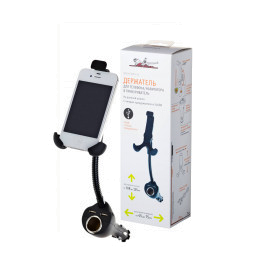 Держатель для телефона в прикуриватель на длинной штанге с гнездом прикуривателя и 2xUSB