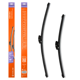 Щетки стеклоочистителя 530/450мм (21"/18") бескаркасные для а/м Renault Symbol (99-08), Toyota Hilux (95-09), Nissan Micra III (02-10), комплект, 1 тип адаптера