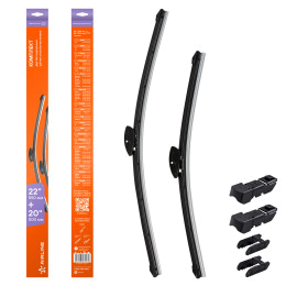 Щетки стеклоочистителя 550/500мм (22"/20") бескаркасные для а/м Mitsubishi Pajero IV (06-)/Pajero II (06), Renault Sandero II (12-15), Hyundai Santa Fe I (99-05), комплект, 3 типа адаптеров