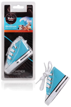 Ароматизатор "Кеды" выполнен из текстильного материала, пропитанного парфюмированной жидкостью.