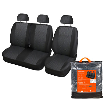 Чехлы изготовлены из автомобильного жаккарда высокого качества черного цвета, который по своим свойствам идентичен штатному. В местах боковой поддержки применяется специализированная жаккардовая ткань "Компаньон". Передние чехлы имеют специальный крой не мешающий открытию подушек безопасности ( у моделей, где AIRBAG предусмотрен заводом иготовителем).