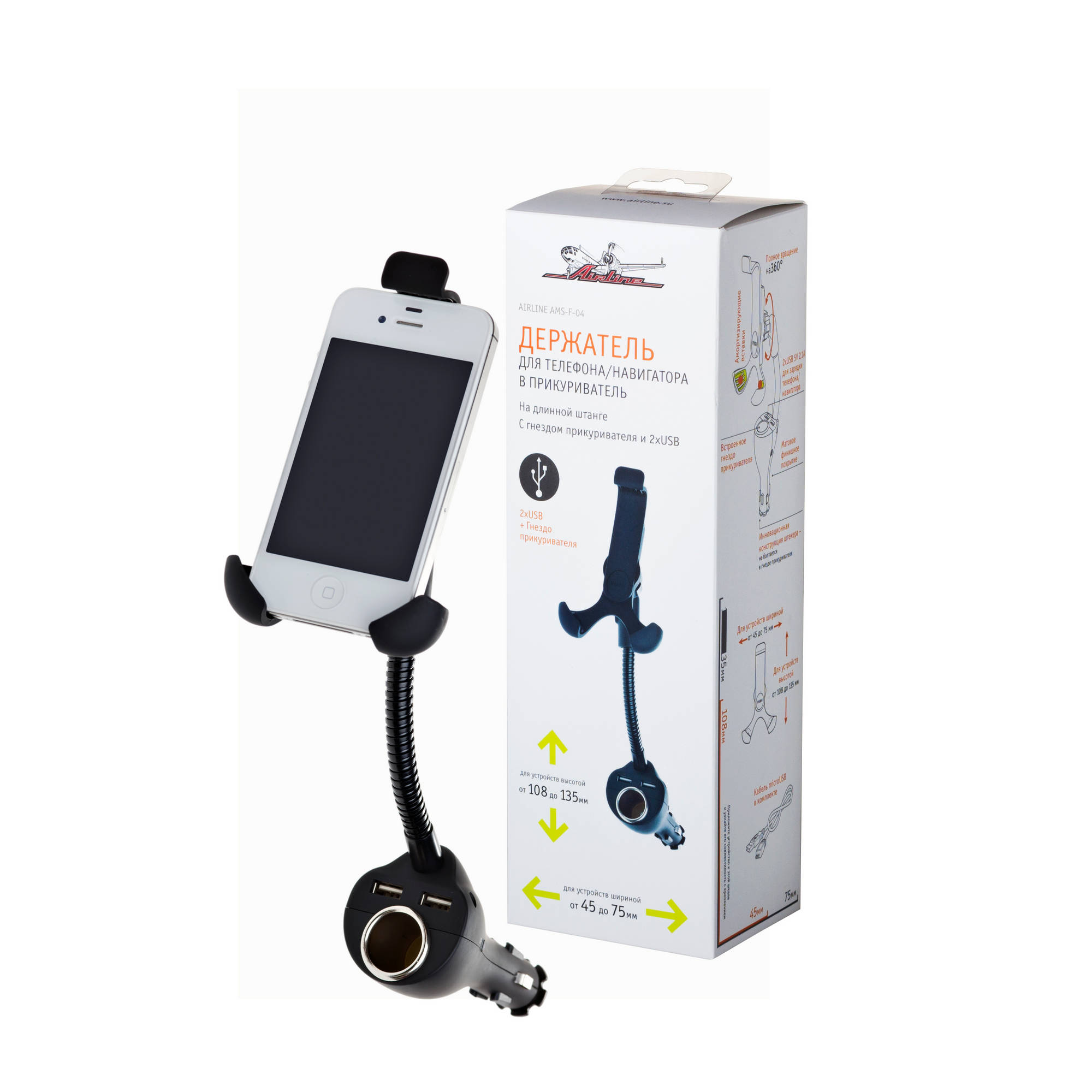 Держатель устанавливается в гнездо прикуривателя. Имеет несколько регулировок наклона. Резиновые накладки на прижимах надёжно удерживают устройство от выскальзывания.