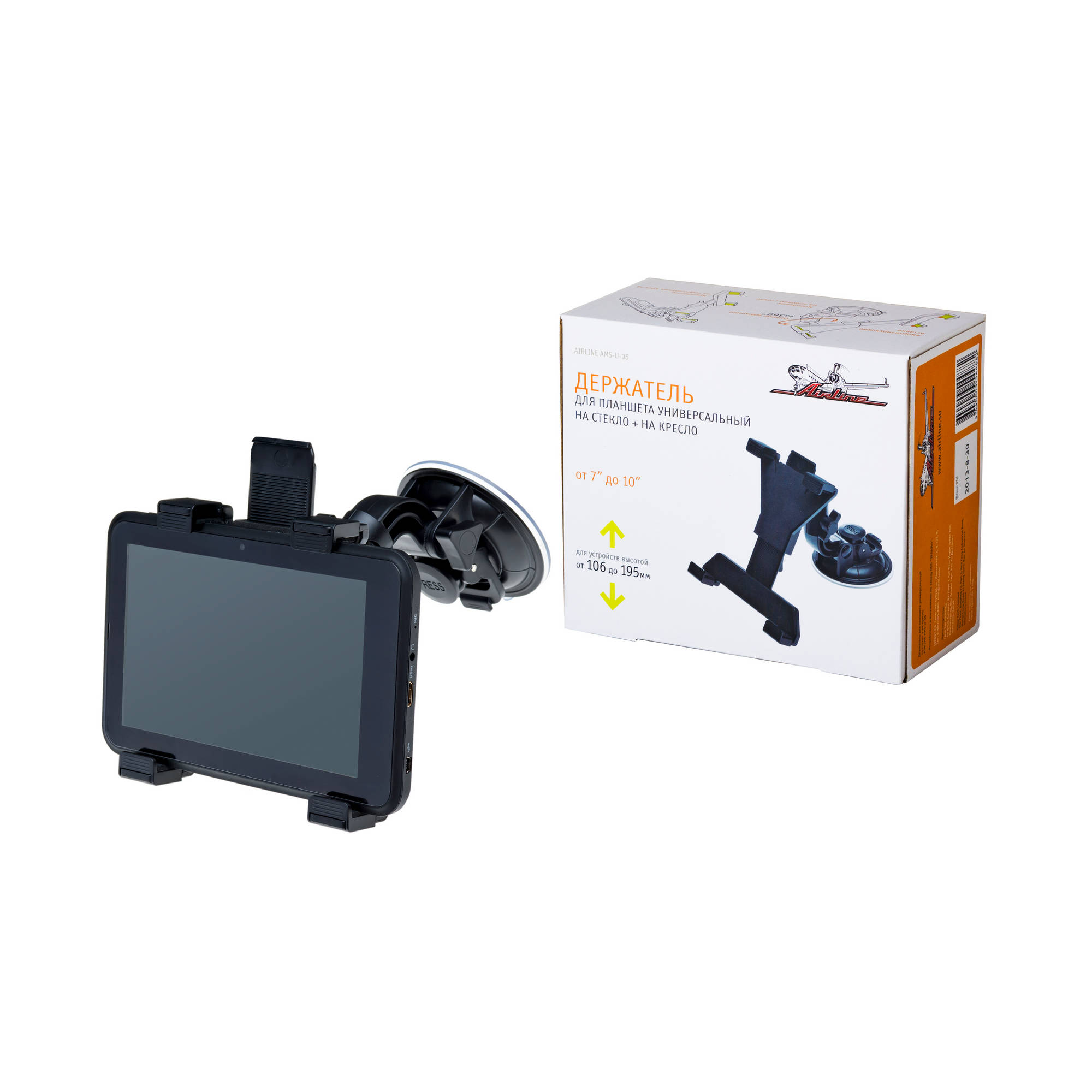 Держатель крепится на поверхность стекла или приборной панели при помощи присоски или на подголовник кресла. Имеет несколько регулировок наклона и способен удерживать не только смартфон но и планшет размером от 106 до 195мм. Резиновые накладки на прижимах надёжно удерживают устройство от выскальзывания.