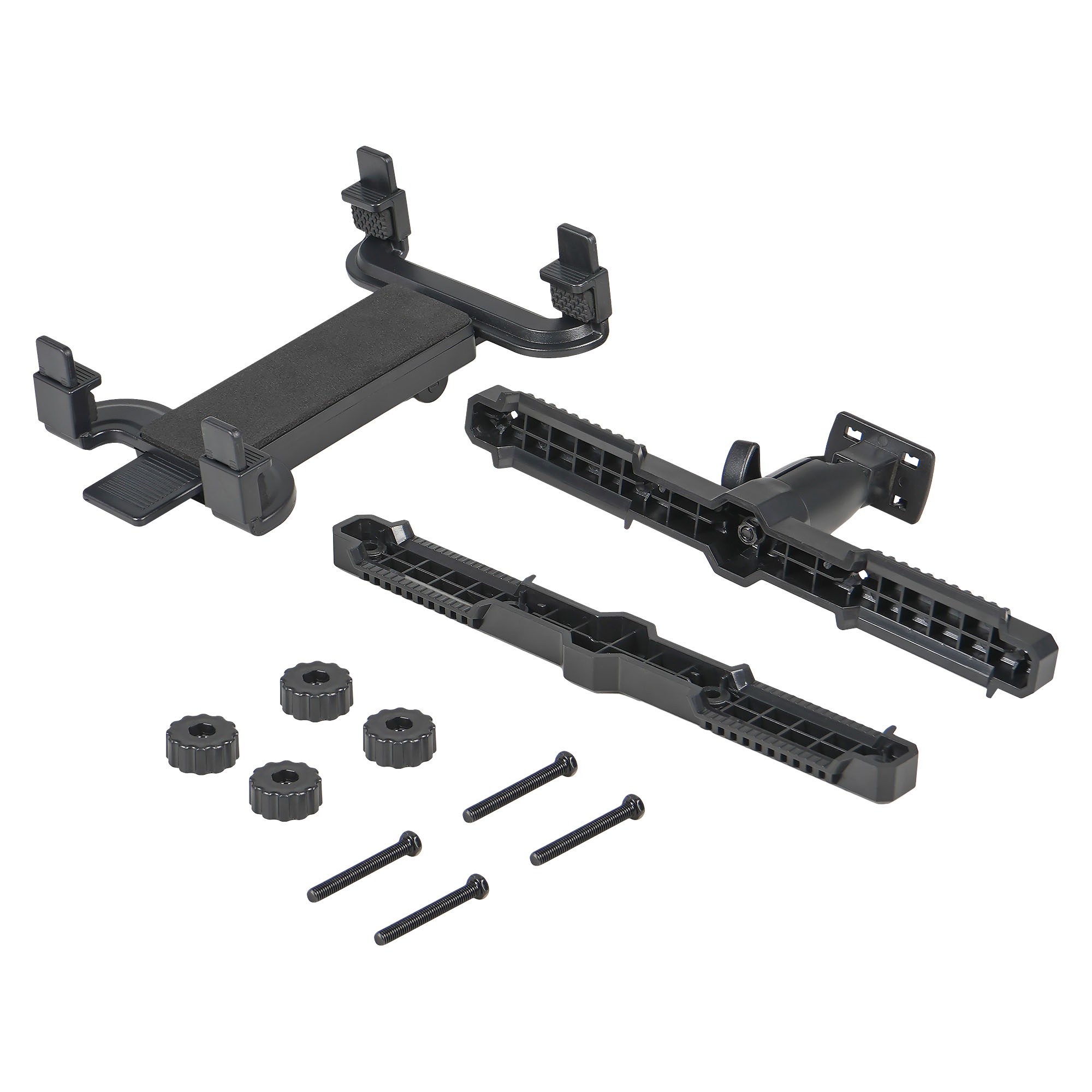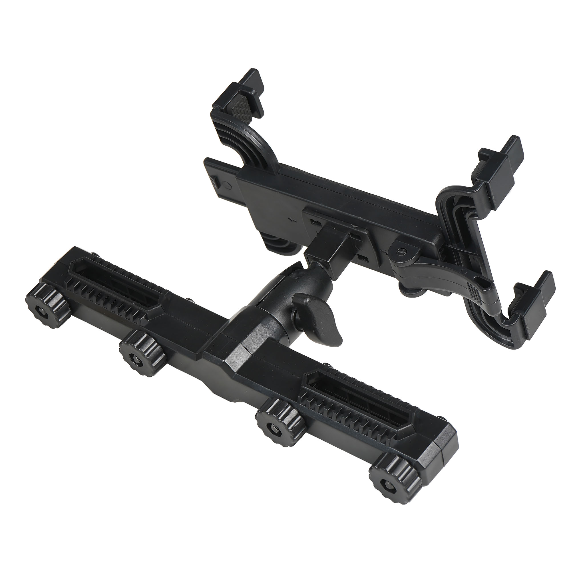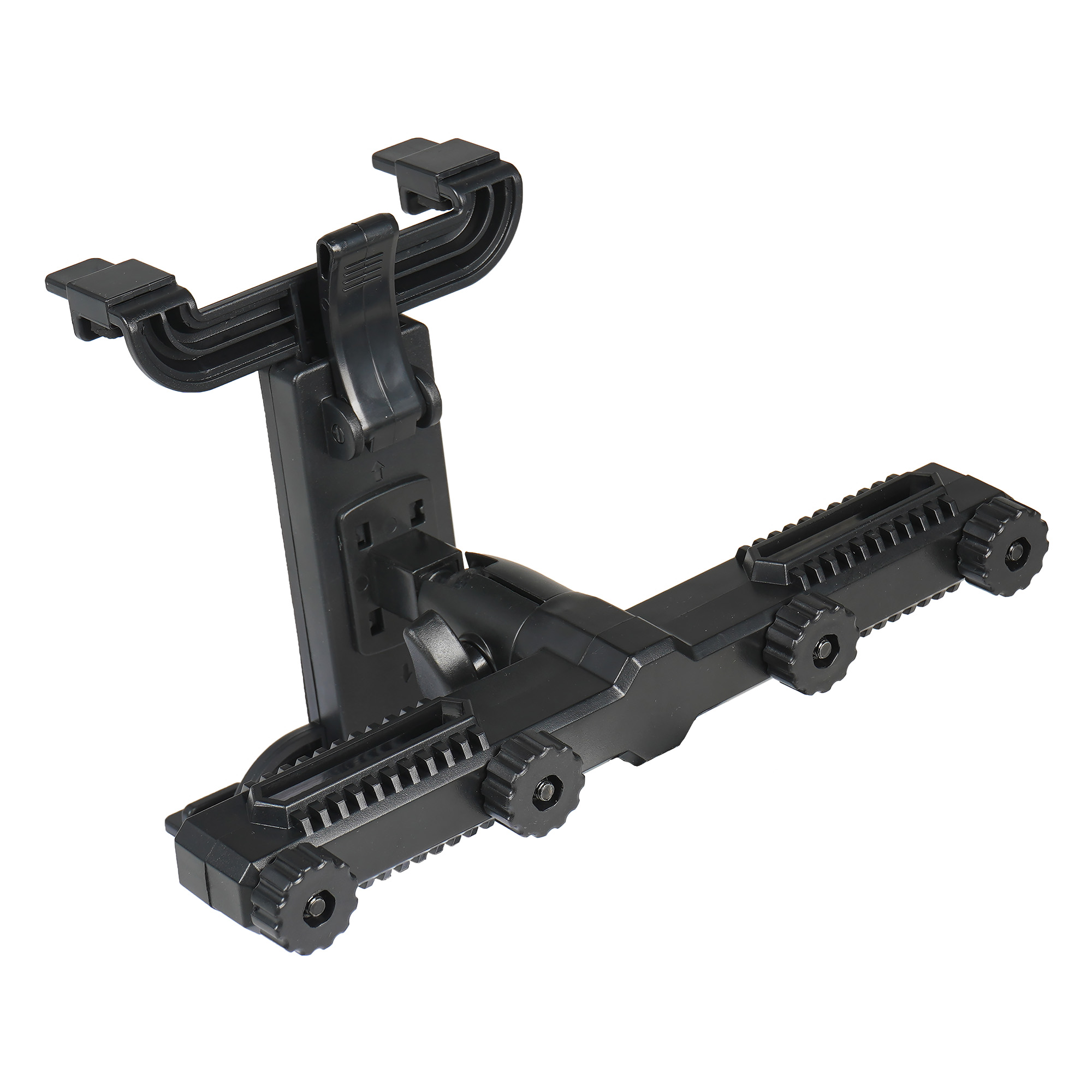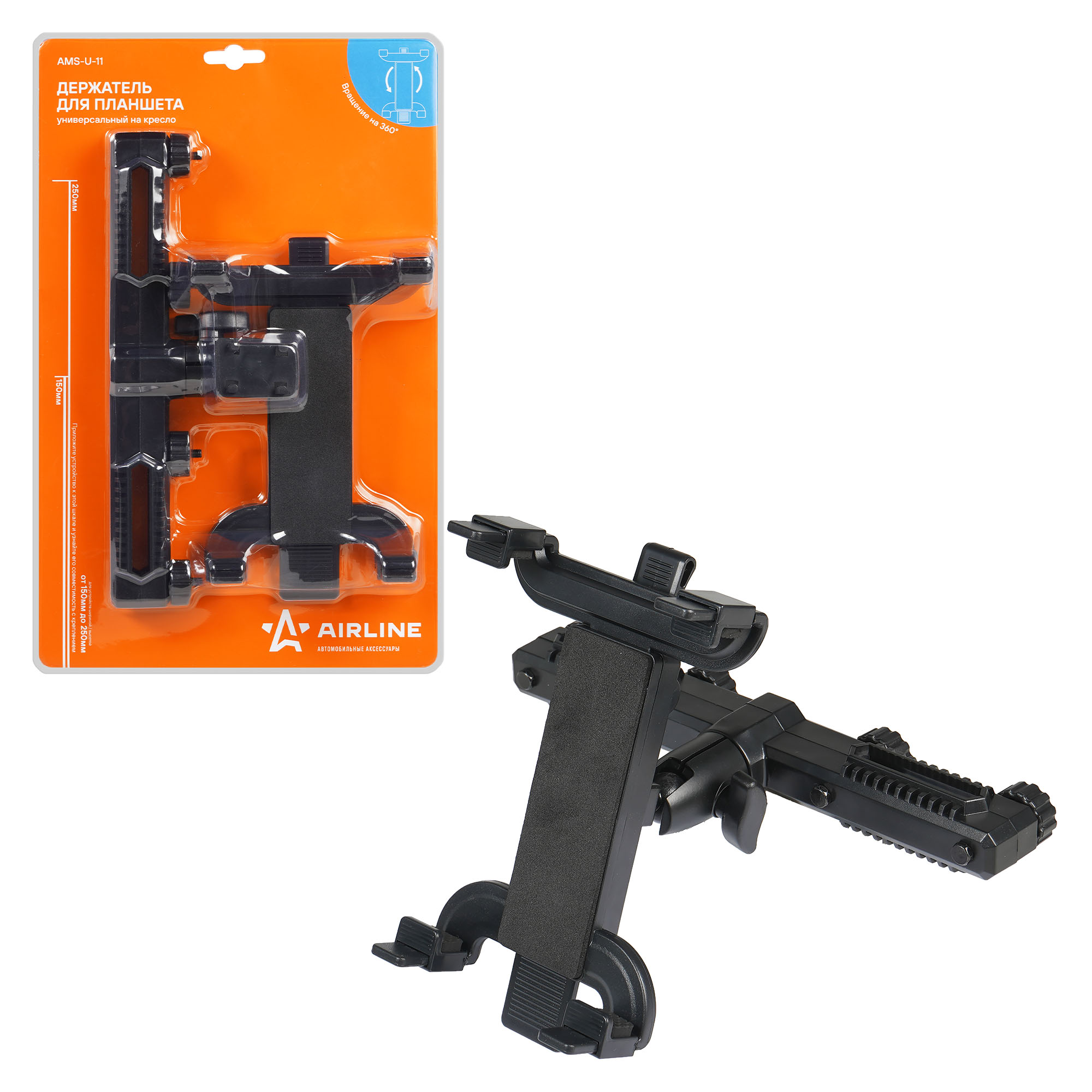 Держатель крепится на подголовник кресла. Имеет несколько регулировок наклона и способен удерживать не только смартфон но и планшет размером от 150 до 250мм. Резиновые накладки на прижимах надёжно удерживают устройство от выскальзывания.