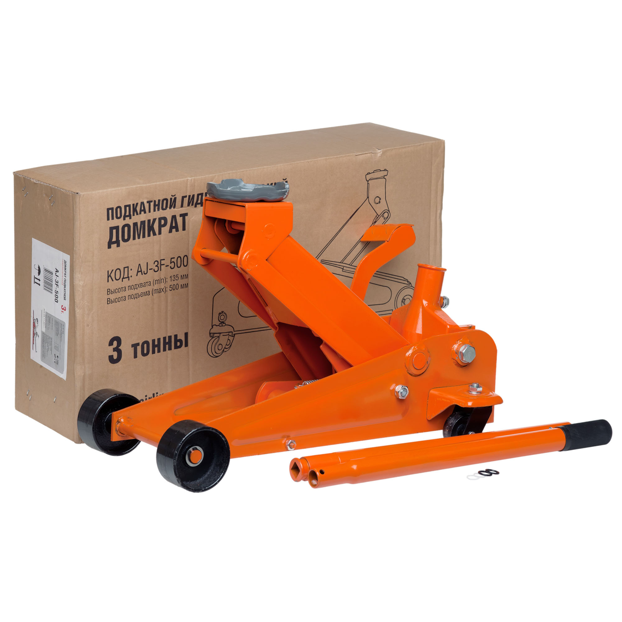 Домкрат подкатной 3т (профессиональный) (MIN - 135 мм, MAX - 500 мм) (AJ-3F-500) картинка номер 1
