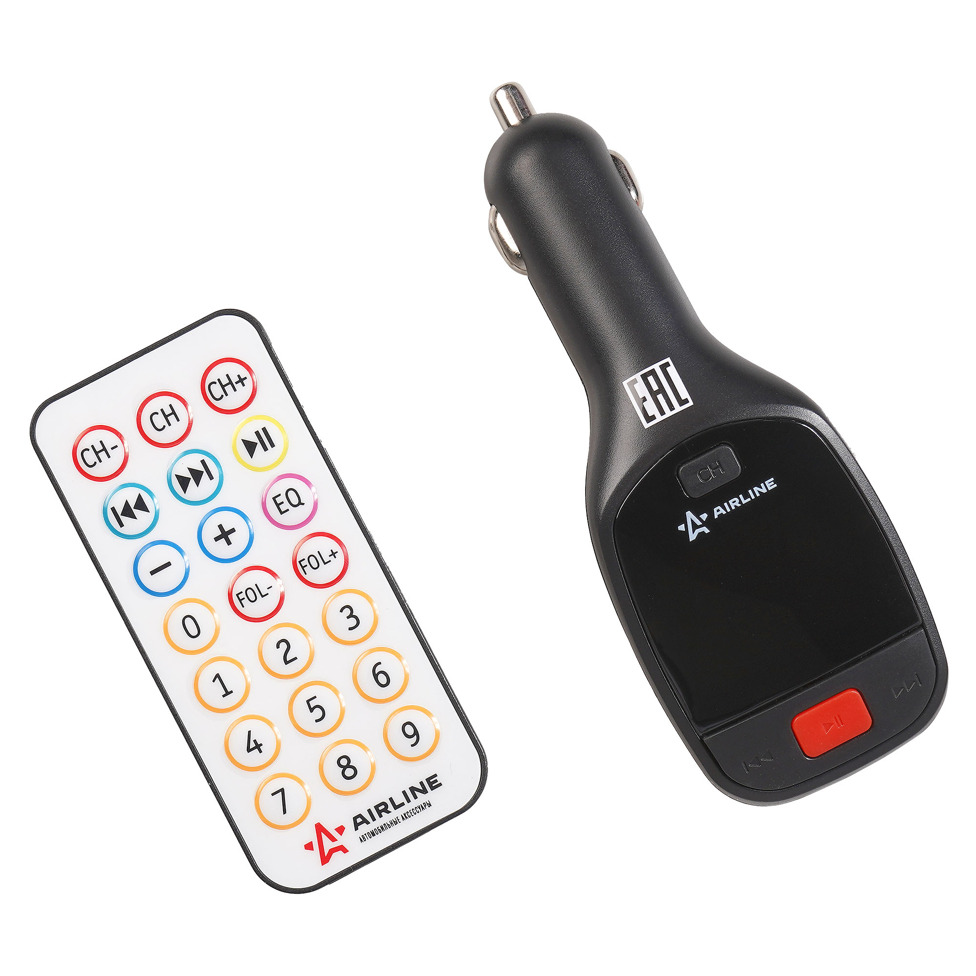 Питается устройство от гнезда прикуривателя 12В. В комплекте поставляется дистанционный ИК-пульт для управления трансмиттером.