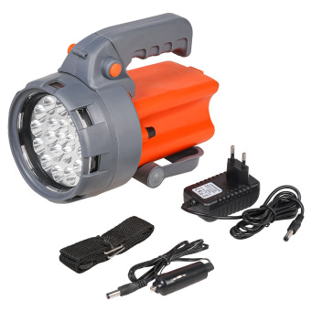 Фонарь данной модели используется в области строительных и ремонтных работ, а также при разрешении различного рода аварийных ситуаций. Основным преимуществом изделия является наличие встроенной батареи, которая функционирует за счет периодической подзарядки. Время работы заряженной батареи составляет до 8 часов. Освещение происходит благодаря 19-ти ярким светодиодам белого цвета.