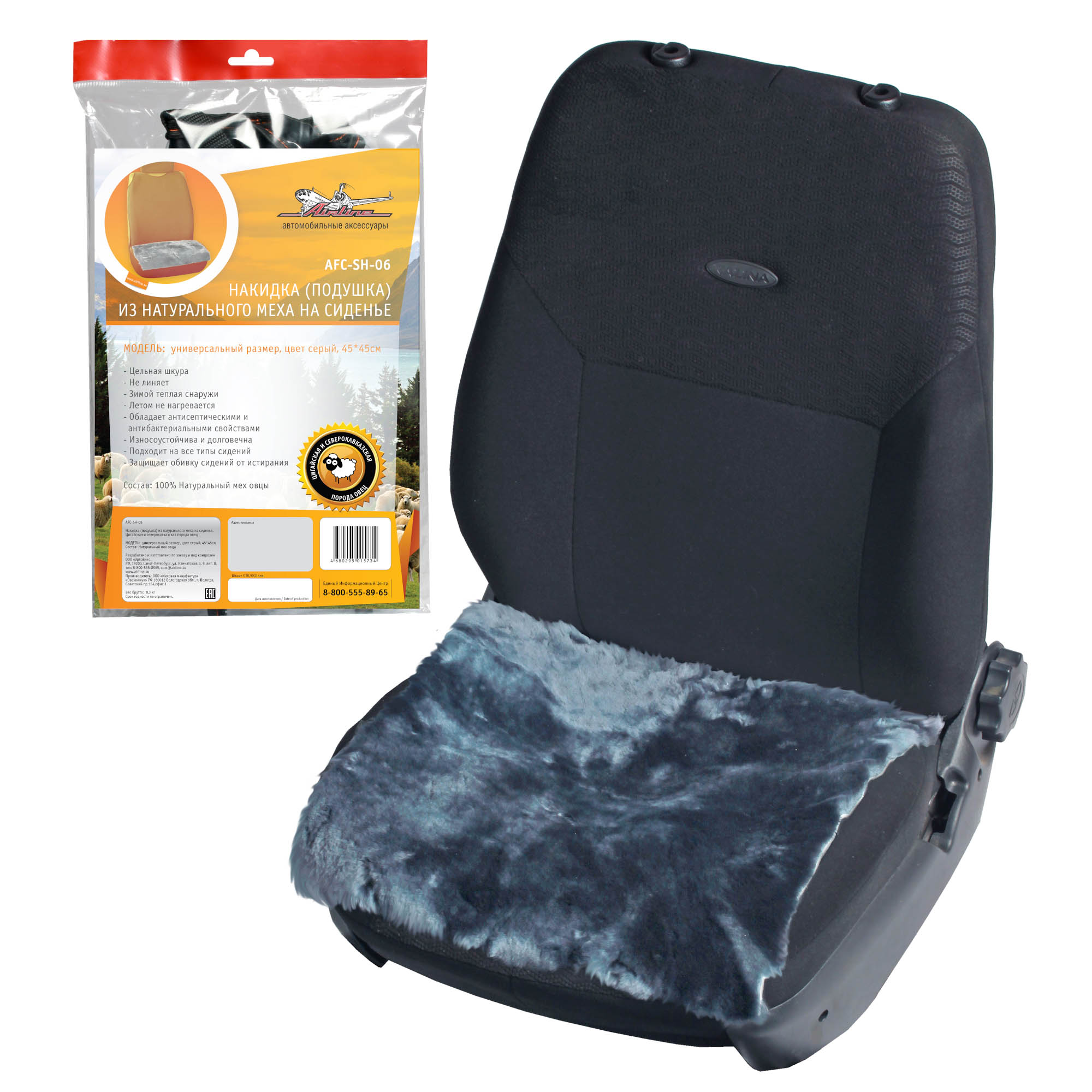 Накидка (подушка) из натурального меха на сиденье, цвет серый, 45*45см